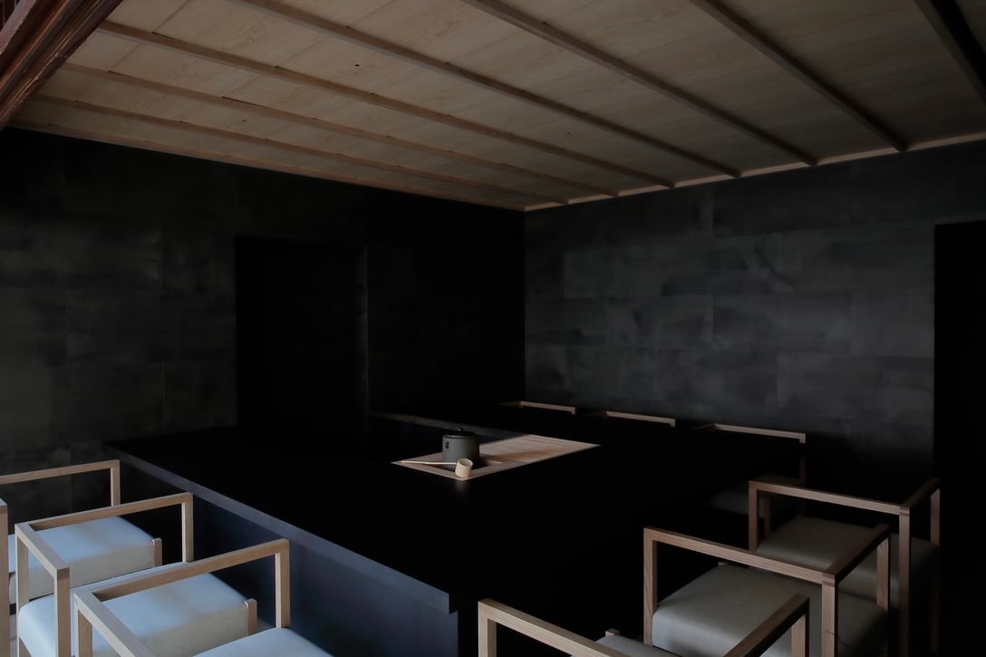 随后他联合了当地一家历史悠久的和菓子铺进行美食甜点的制作,并为其配备了五种不同的日本茶和鸡尾酒来搭配一起饮用。并且茶室内从地板到椅子、桌子、餐具等几乎所有的设计和物品全部是原创作品,只为“然美”而打造。