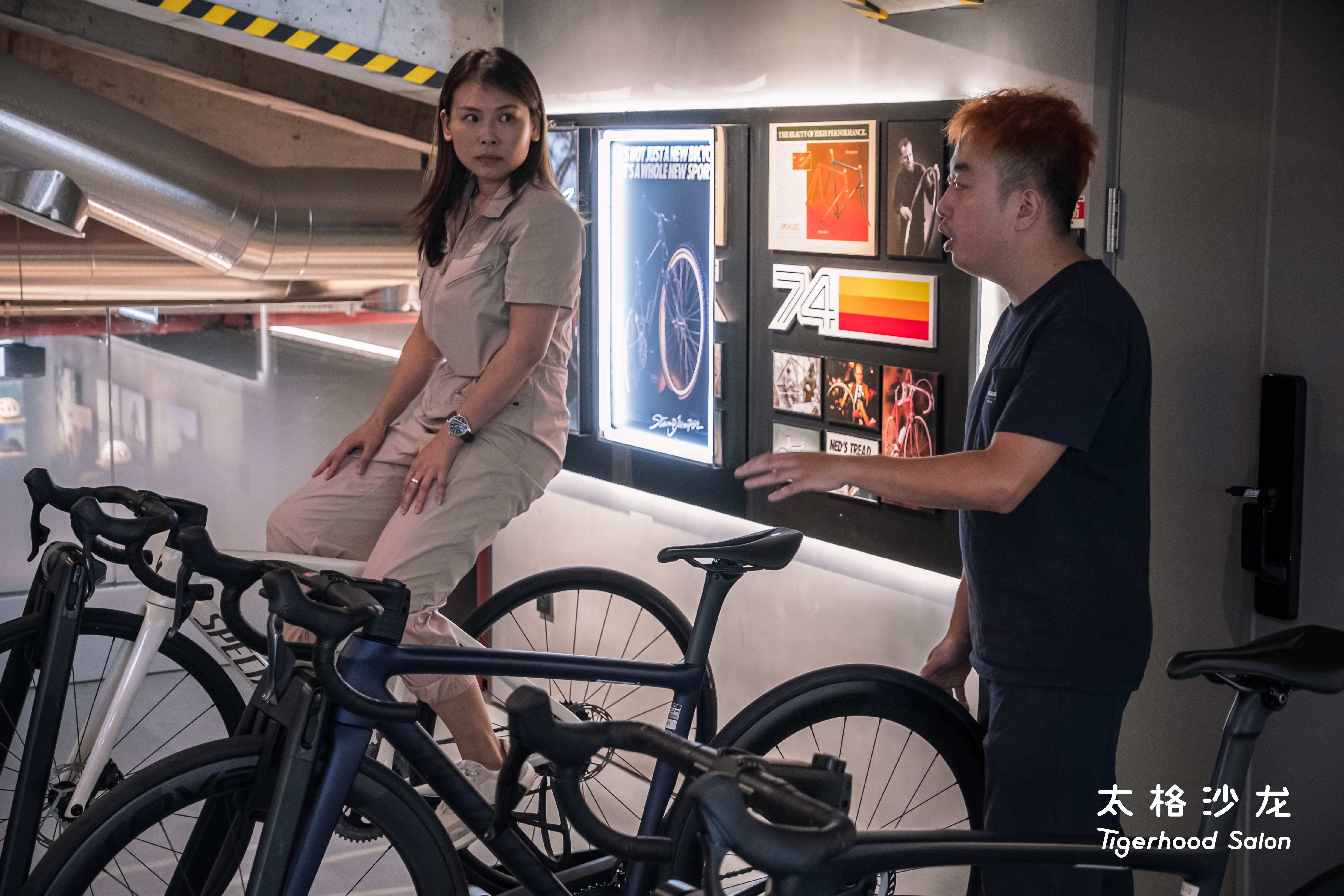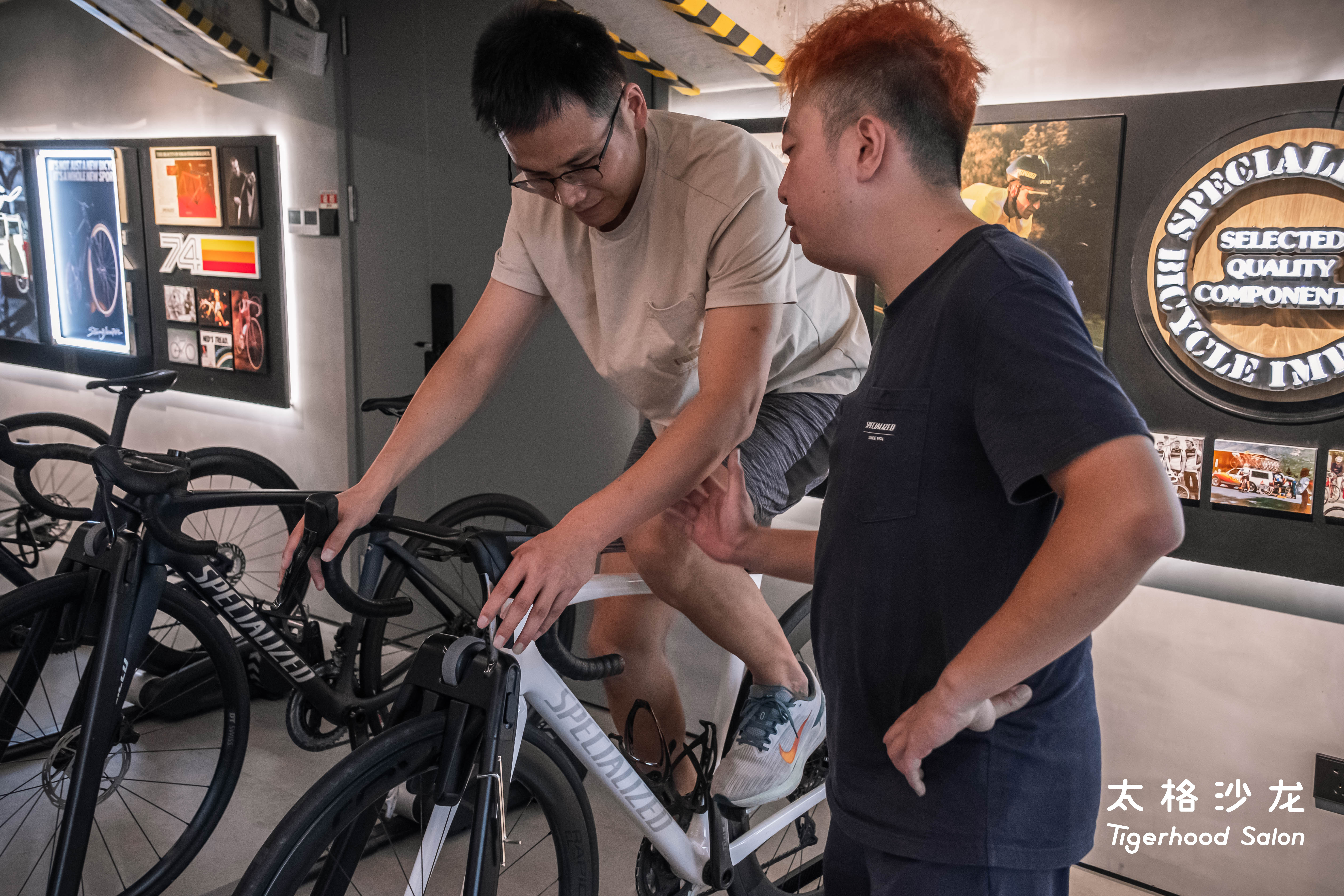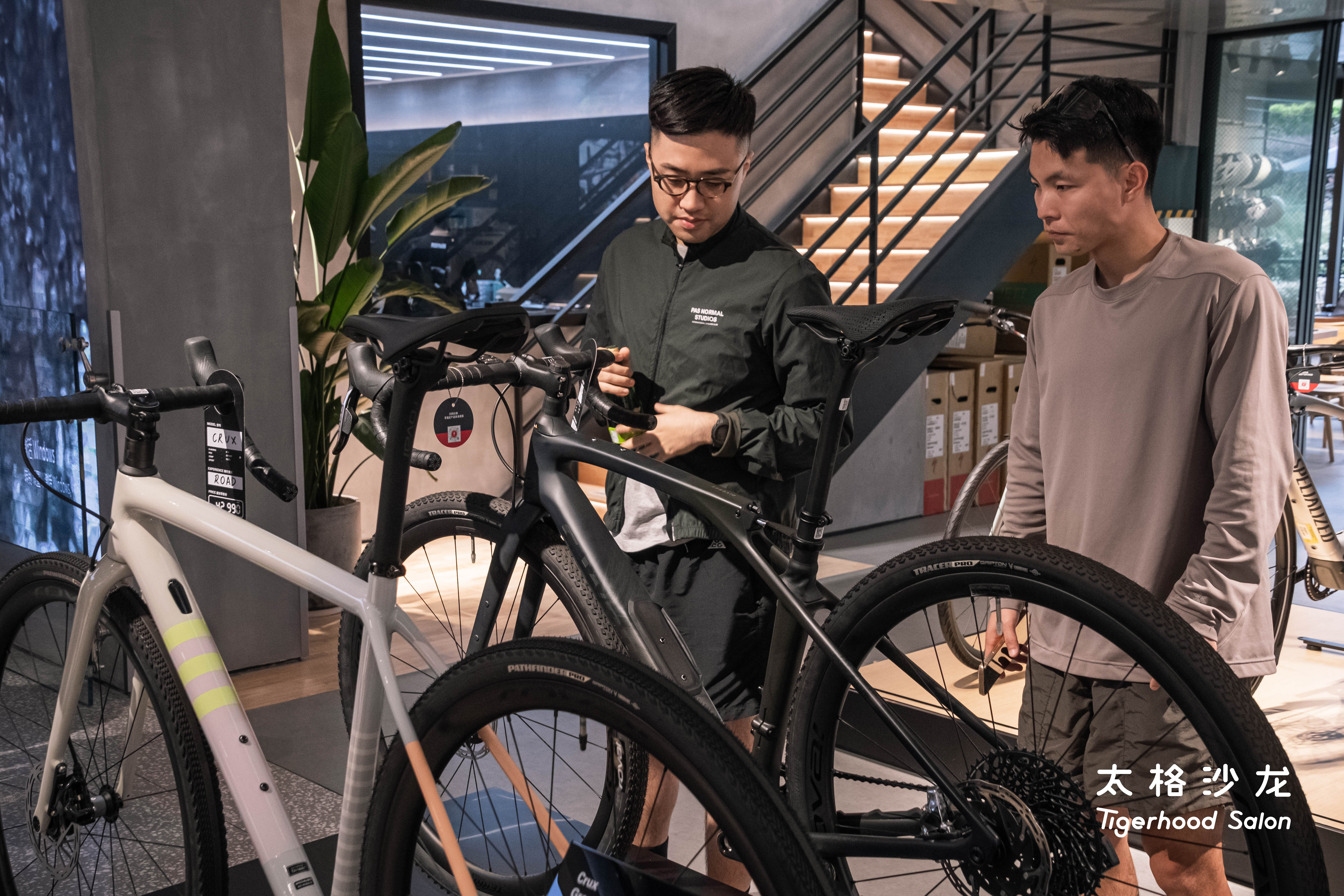 而活动当天天气也非常适宜公路骑行,厚重的云层遮挡了部分阳光,裹挟着微风,安静又舒适。随着大家陆续到达 Specialized 店铺签到入场,骑行课堂还未开始就有不少朋友已经与 Specialized 店员交流起店内摆放的公路车,店员也热心指导到场的朋友如何测量自己的数据,选择合适自己体型的车型。