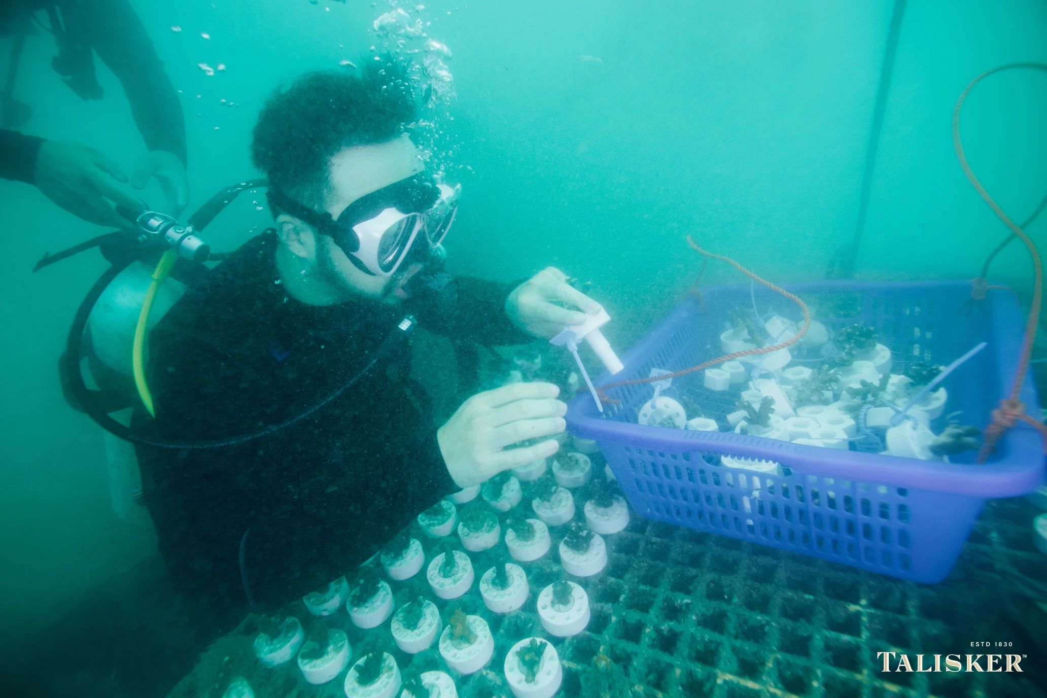 携手中国本土海洋保护组织亿角鲸NOC,带领一众威士忌与海洋爱好者潜入海中,亲手种下一片专属于泰斯卡的珊瑚林。