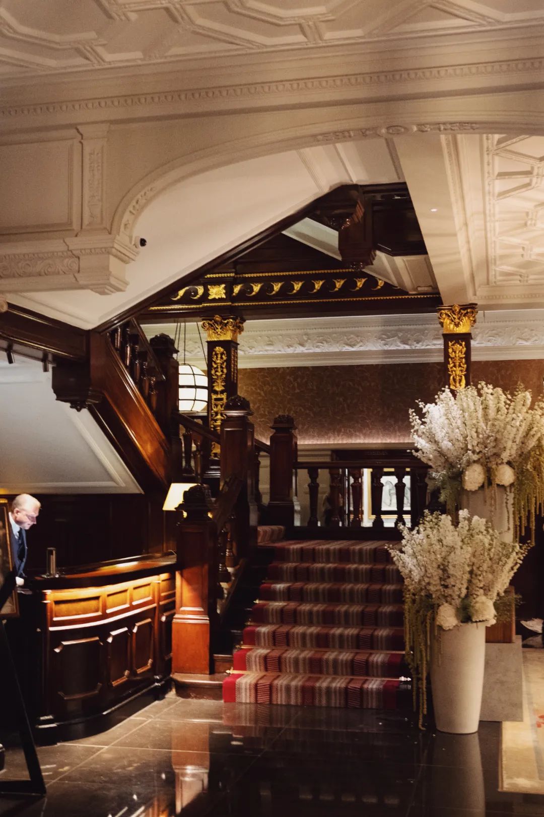 酒店整体风格低调,典型的英式老建筑中夹杂着一些装饰主义的设计,处处散发着old money气息,可以说完全就是对“英伦贵族”生活刻板印象的具像化(与之对应的是1000英镑每晚起的房价)。