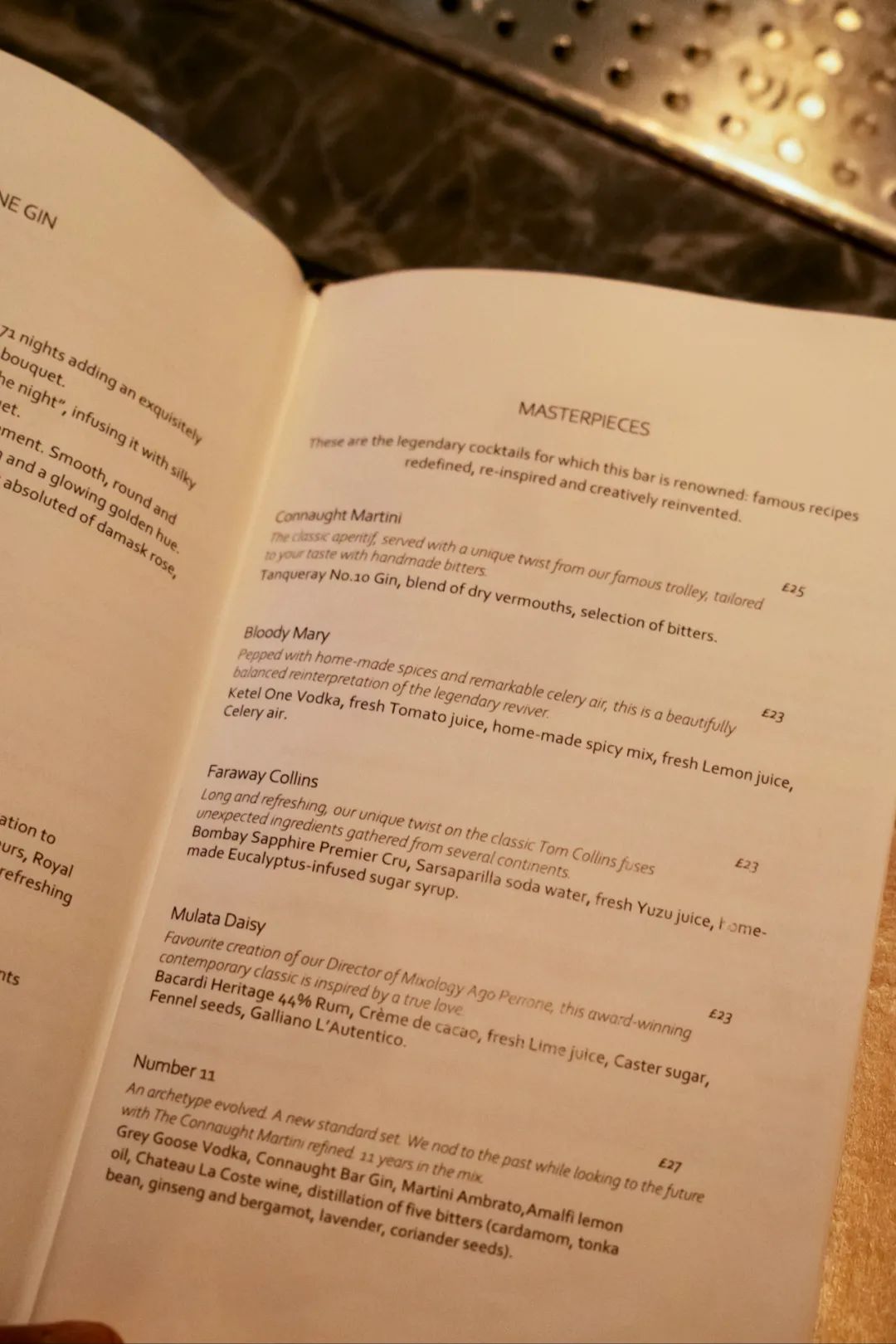其实之前,我根本没打算来这里,毕竟均价25英镑一杯的鸡尾酒,几杯的价格就够我去伦敦的不少新兴酒吧滚一遍酒单了。但在离开英国之前,还是本着中国人“来都来了”的原则,叫上朋友一起去了。