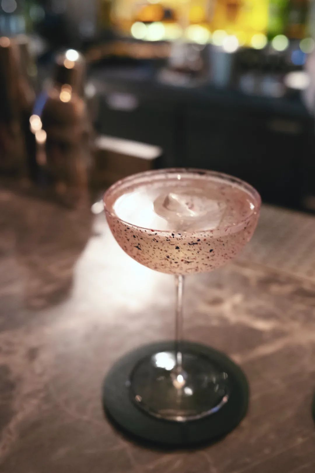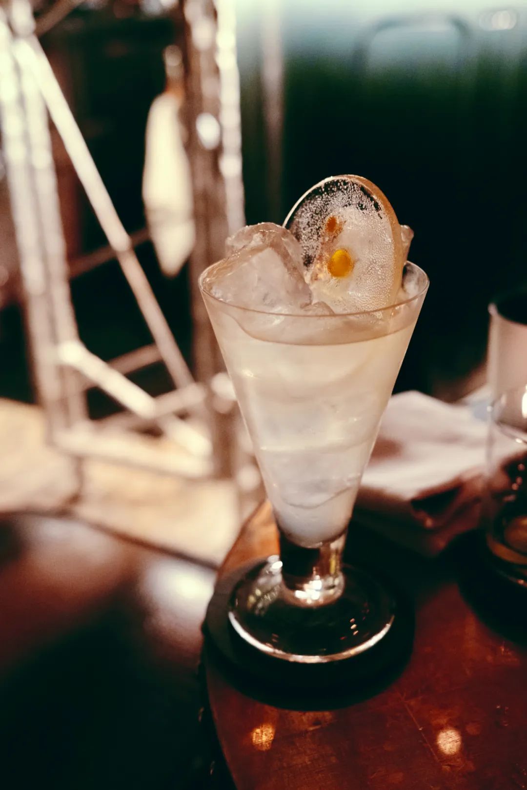 这杯酒以在酒吧中不太常见的桌边服务的形式呈现,我先是被询问了想用什么基酒,金酒或是伏特加,只要是酒吧有的酒款都可以指定。