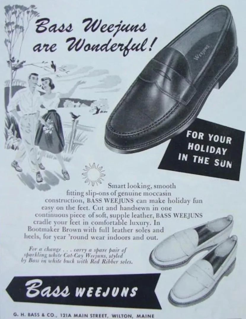 先来说说关于Loafer的起源。在纸质杂志以及网络渠道流传着最少5个不同版本的Loafer起源,甚至不同品牌都在各执一词,而笔者更倾向于其中的“时尚杂志说”。该版本中Loafer的起源要追溯到1936年,由知名制鞋公司G.H.BASS应邀为当时一本时尚杂志的秋冬假日造型定制专属鞋款,杂志的要求是介于正装和酒店拖鞋之间,G.H.BASS在参考了传统的莫卡辛鞋之后顺利交工,于是乎最早的Loafer出现了,之后一段时间内大家习惯成这种鞋为“Bass Weejuns”。