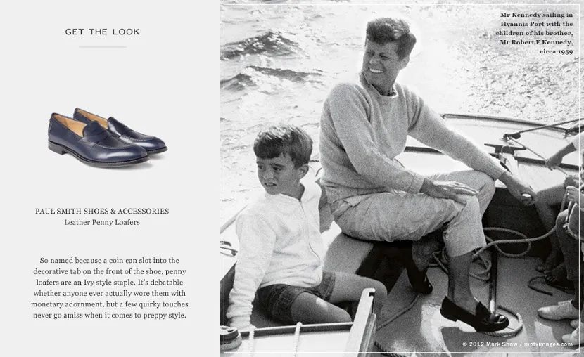 而从Bass Weejuns进化到Loafer就不得不提另一个制鞋公司Sebago。根据Sebago的官方说法,在1964年设计团队根据流行于瑞士的一双「Classic Penny」改良制成了当下的「Penny Loafer」,在制鞋工艺上比起Bass Weejuns要更考究一些,配合亲民的定价瞬间成为一款跨年龄的革靴逸品,从大学生到职员都在追捧,而在这双Penny Loafer取得的成功之后,Sebago乘胜追击在70年代初推出了基于Penny Loafer原型改造的Docksides(帆船鞋),亦成为IVY风格不可或缺的元素。