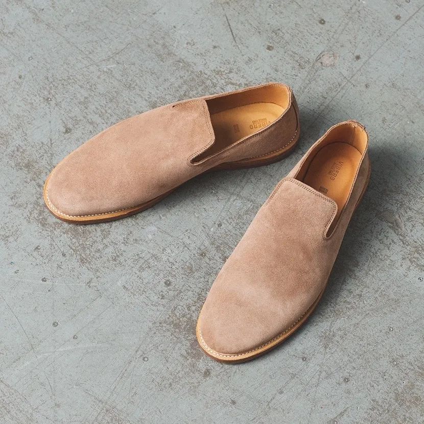 鞋面没有任何修饰的Hole-Cut Loafer(原幅乐福鞋)在当下很多复古品牌比起一些老牌绅士革靴品牌做得要出彩,比如加拿大的VIBERG,意大利的BUTTERO。因为鞋面的极简属性对于鞋楦曲线的拿捏要求很高,很多平价品牌都不敢贸然尝试。