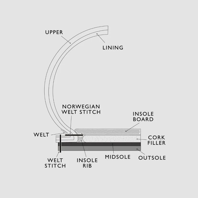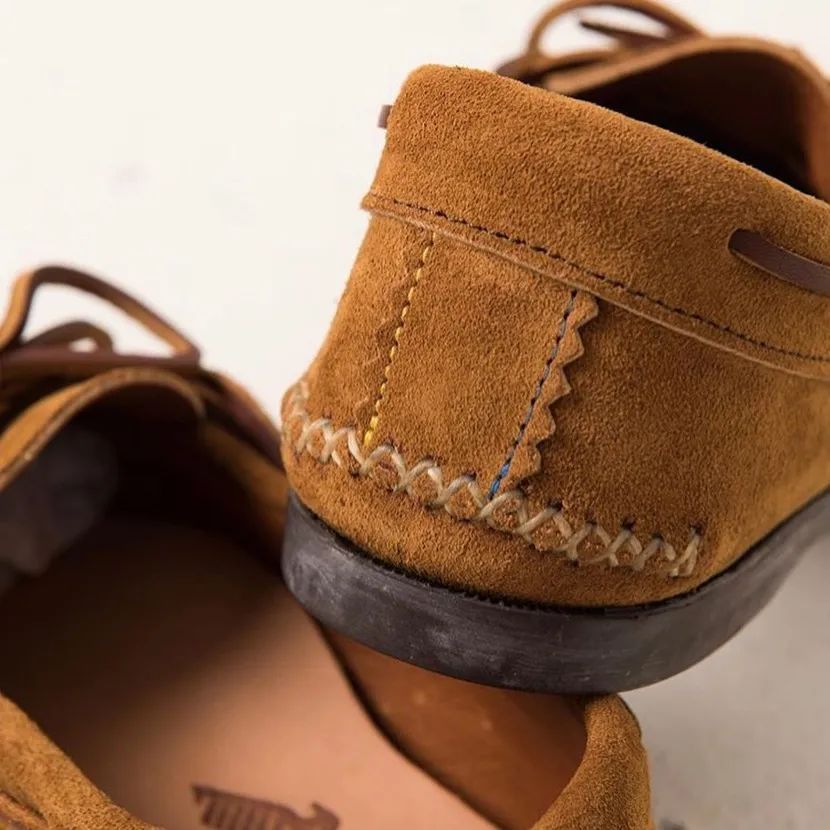 Loafer在鞋头与后跟的缝制方式,绝大多数情况下都是采用不同的莫卡辛工艺,而大底缝合的工艺和其他低帮革靴没有太大区别,分为常规的Good Year Welt(固特异),Blake Stitch(Makay Method),进阶的Norvegien Welt(挪威缝)以及更耗时耗力的“纯手工固特异”Hand-sewn Welt。其中稍有不同的Blake Stitch是把鞋身,中底以及外底缝合在鞋的内侧,表面隐藏了缝线,YUKETEN的Loafer就经常出现该工艺。