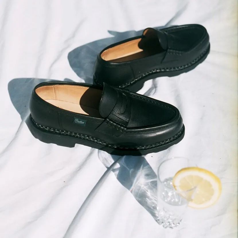 其实只要工艺到位,平时注意着用时注意养护,不同的缝制方式并没有耐久性上的区别,主要还是体现在对于鞋款本身风格的影响。比如Paraboot挪威缝工艺打造的“REIMS”在造型上更粗犷一些,适合于偏复古的穿搭,用内敛一些的固特异工艺缝制的Loafer穿搭自由度就比较高。