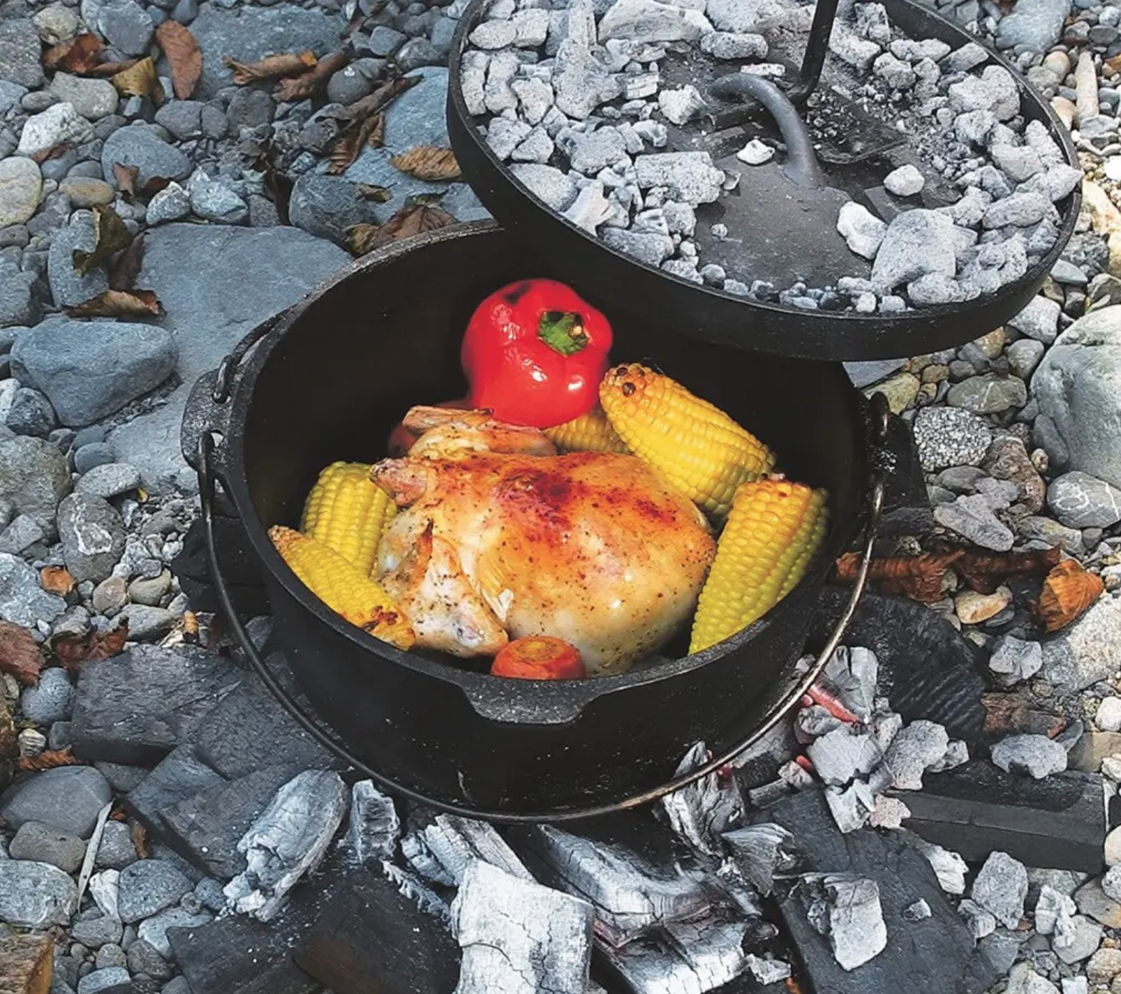 荷兰锅在日常露营时非常常见,一般这类锅都是由铸铁制作而成,其次也有铝和瓷等其他材质。虽然叫荷兰锅,但其实它源自于英国。荷兰锅的好处就是可以稳定保存热量,所以很适合做一些无水的料理。直接放入鸡肉、鱼肉、蔬菜等,凭借食材水份的蒸发即可将食物做好。再加上非常好的密闭性,整体口感也更加美味。