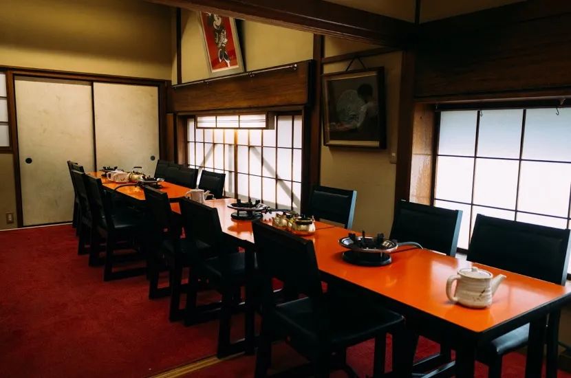 店内提供跪式与坐式两种用餐方式,除了锅具和桌椅这种消耗品经历过几次更迭之外,木质窗棂以及木质屋梁都是百年前的模样,很多食客也是冲着享受与时间对话的微妙感觉而来,这种扑面而来富有生机的古朴是在很多过分精致的东京米其林餐厅中寻觅不到的。