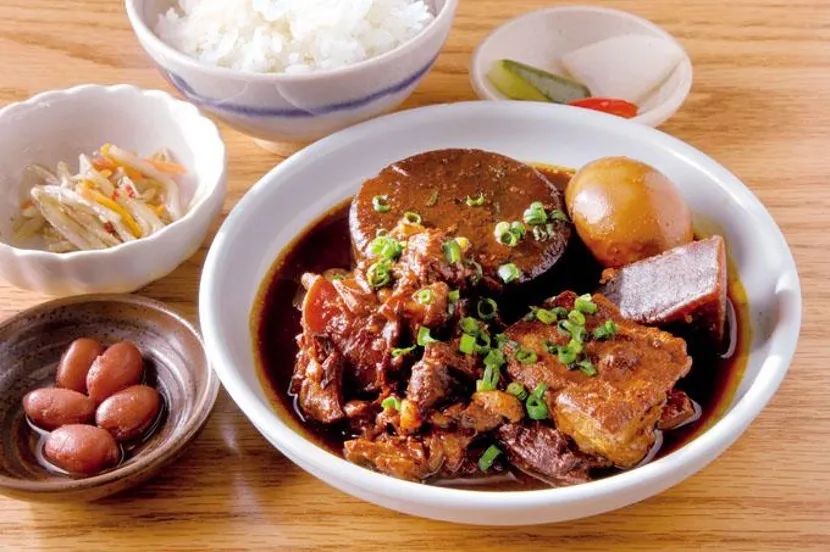 味增牛筋定食套餐中竟然融入了中餐传统的红烧做法,口味稍微偏重,所以套餐中配合有腌制的时令小菜用来中和,此外再点上店内中国北方风味的烧麦一顿简简单单很东方的午餐就完成了,人均消费百元人币左右,就东京的物价而言很物美价廉了,隐约间有种沙县大饭店的感觉~
