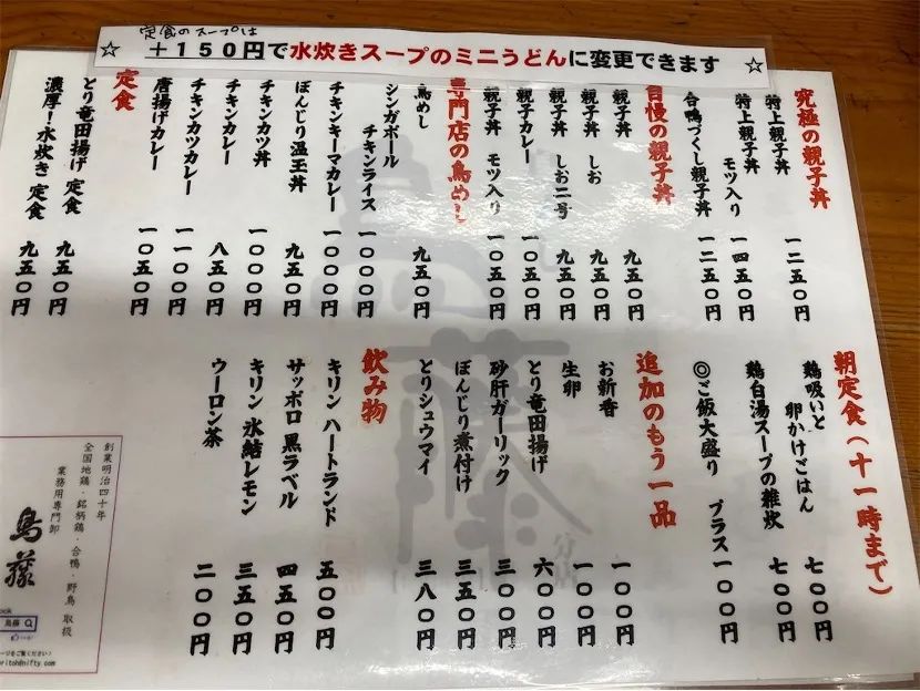 鸟藤 分店和很多地处筑地市场的街边店一样量大实惠,店内“最高配”的鸡肉亲子丼定食套餐定价1450日元,一般来说1000日元就能大快朵颐。