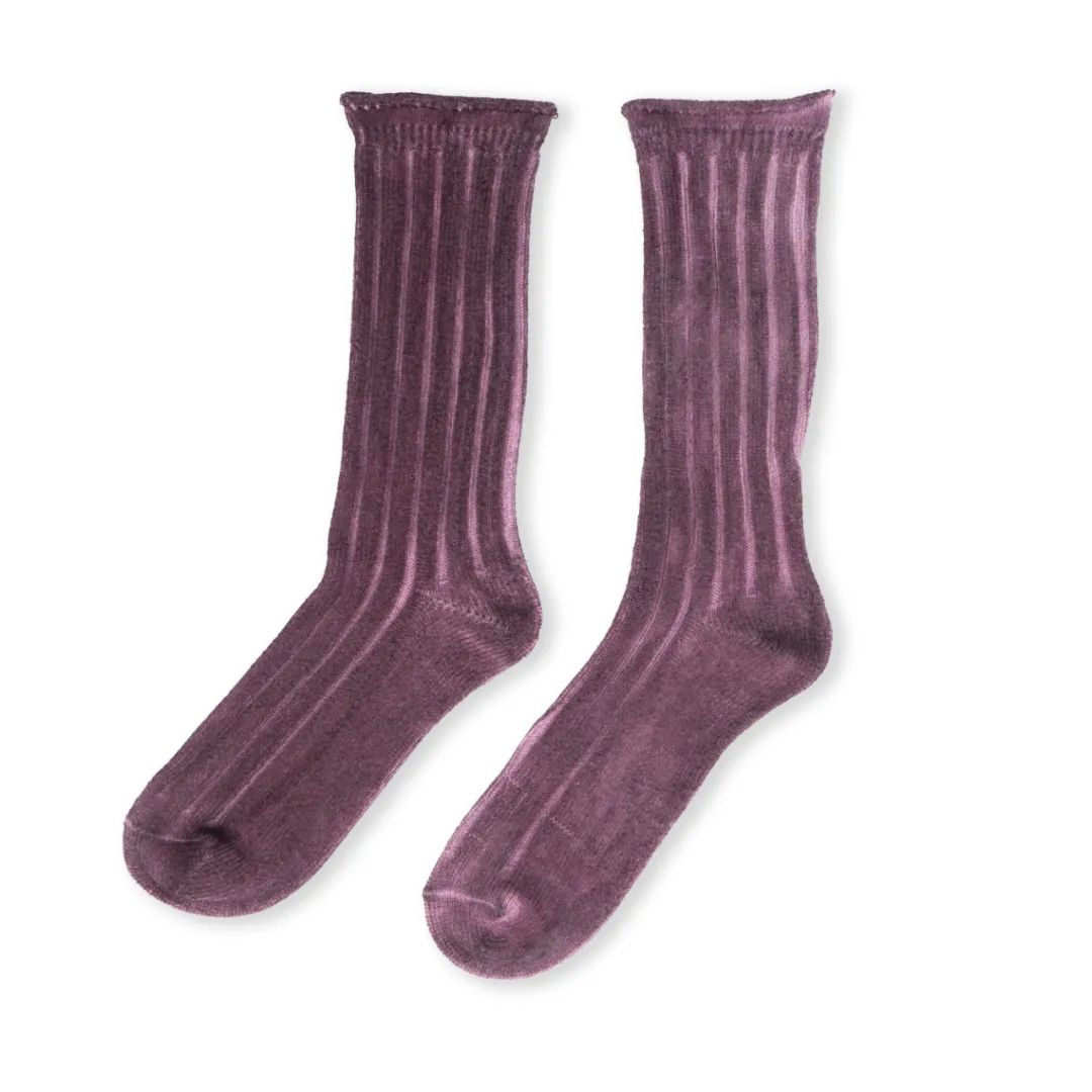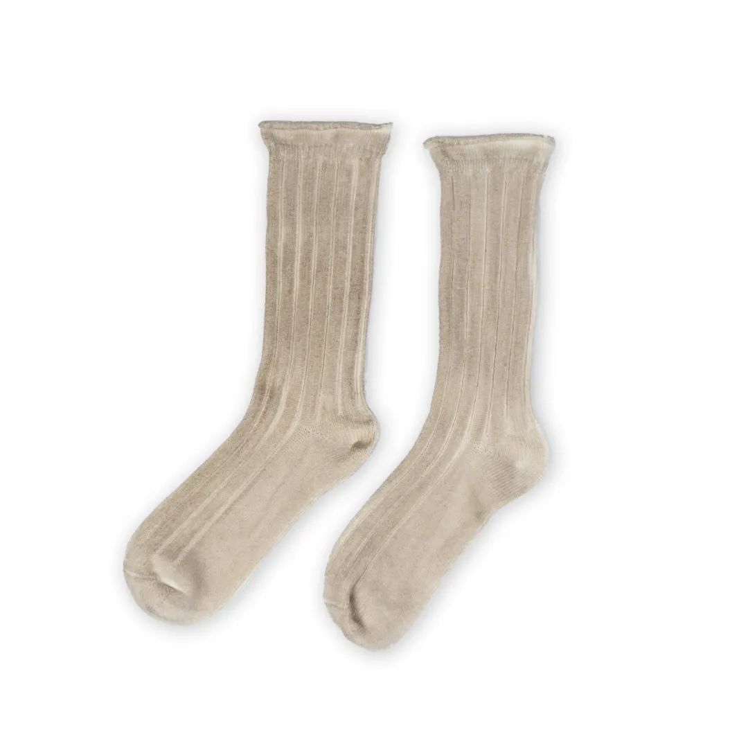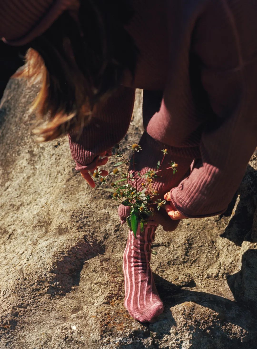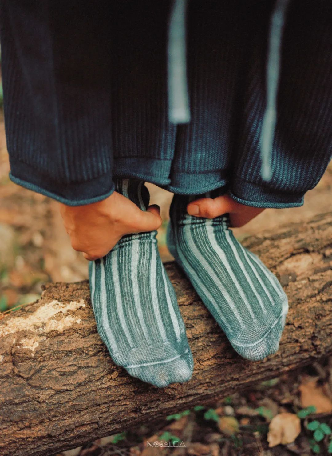 30%汉麻 65%棉 5%弹力纤维的袜子,袜口的使用卷边处理。