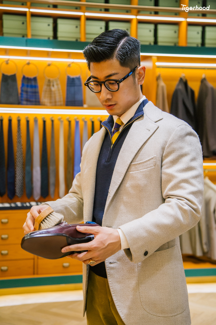 品牌定位于18-35岁之间的年轻消费者,因此在设计方面,将经典与时尚融合,并在全球范围内甄选优质原材料与工艺,细节之处精心雕琢,在秉承传统工艺的同时,不断追求创新。从领带的佩戴方式,到衬衫的选择,到整体的风格把控,品牌的着装顾问都会为消费者提供全面的建议。除了提供高质量的服饰外,店内还设立咖啡售卖区域,在挑选服饰的同时,也可以感受到传递品牌倡导的精致生活方式。