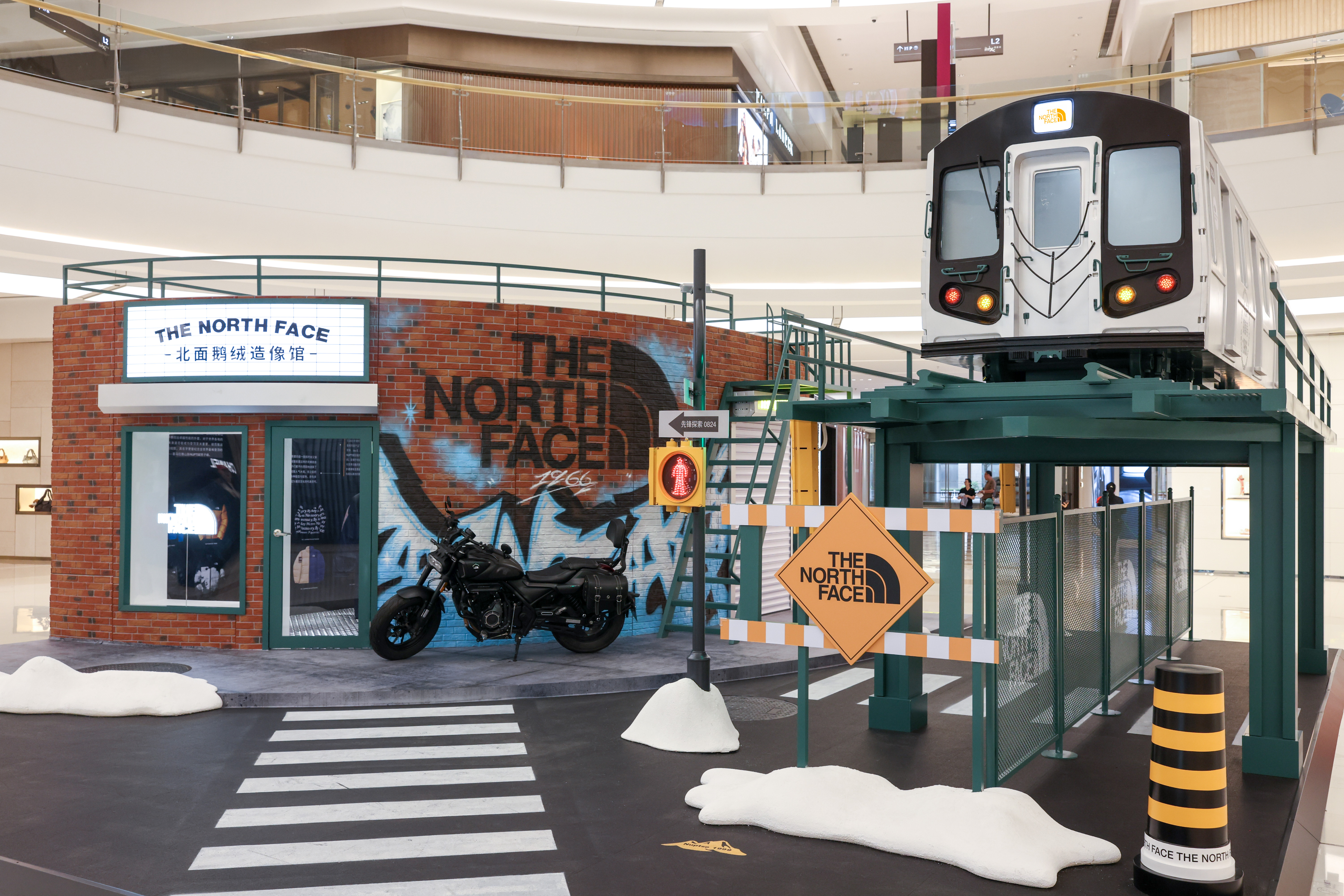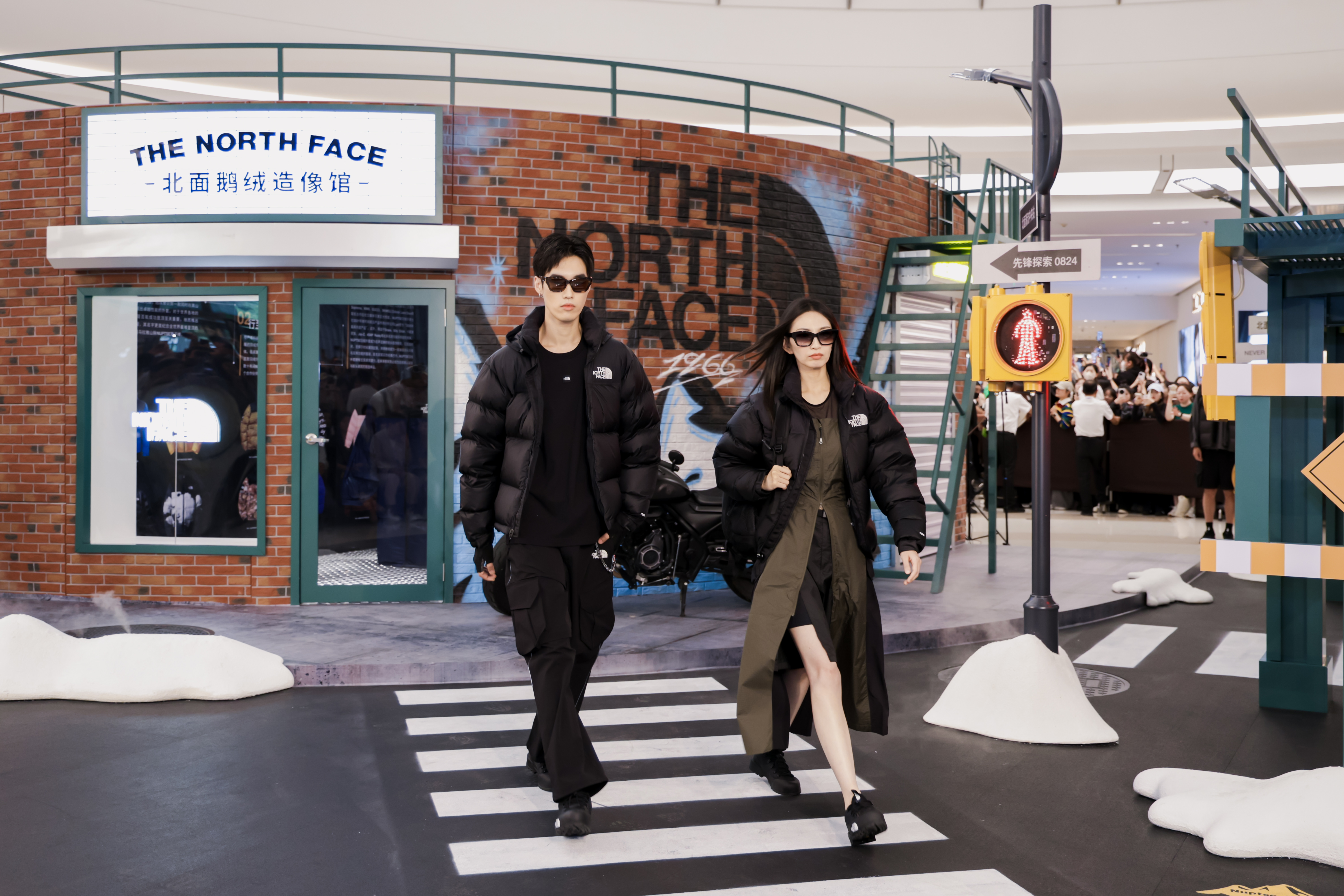北面先锋探索街区呈现了品牌户外精神与街头文化的双重探索轨迹。现场特别打造了「1966先锋探索号」与「北面鹅绒造像馆」两大主题空间,为参观者带来丰富的沉浸式互动体验。在「北面鹅绒造像馆」内,观众与巨型鹅绒服装置趣味互动,感受其原型 96 NUPTSE鹅绒服的经典风格与功能性,并在展览内容的带领下回溯其「始于山峰、行至街头、盛于联名」的精神历程。空间以艺术化叙事串联多维场景,瞬间领略 The North Face 北面延续至今的的先锋探索态度。