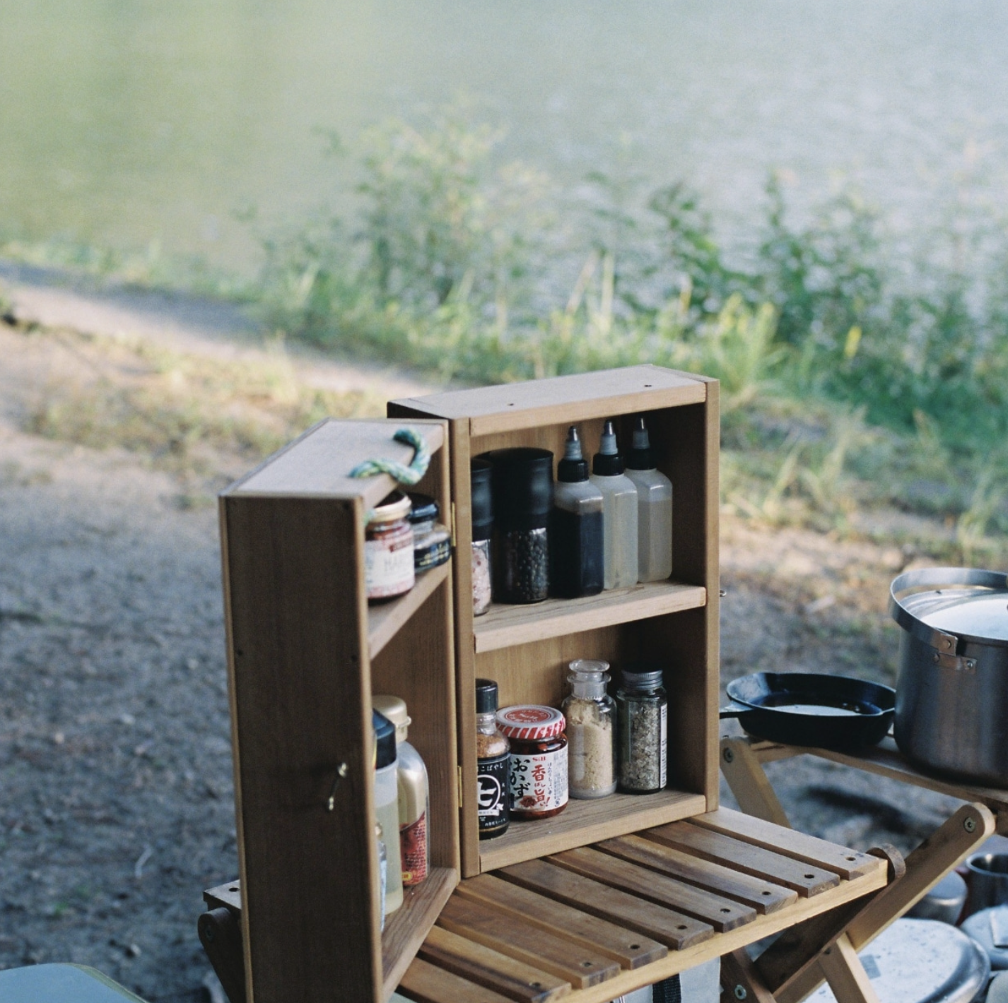 体验完桑拿回到营地,打开一瓶冰啤酒与朋友们碰杯畅饮,此刻的每一口都格外清爽过瘾。稍作休息后,众人便一同着手准备晚餐,依吹怜还特意展示了自己亲手打造的调料柜。从木材切割、打磨抛光,到组装拼接、上漆封层,每一个细节均由她独立完成。