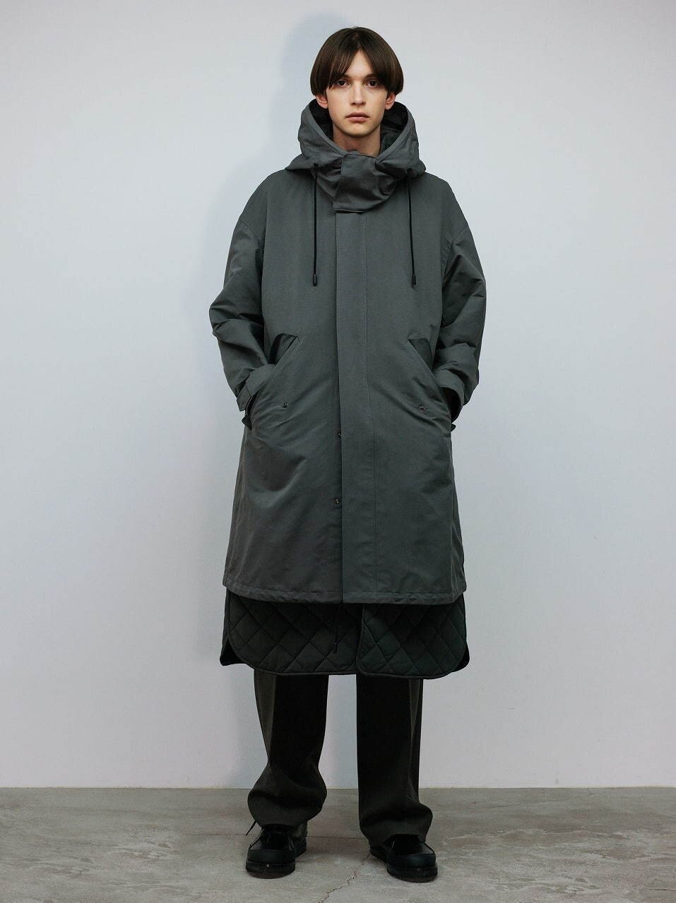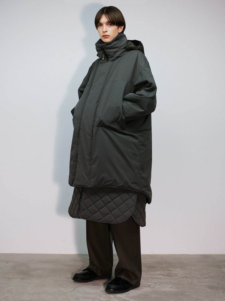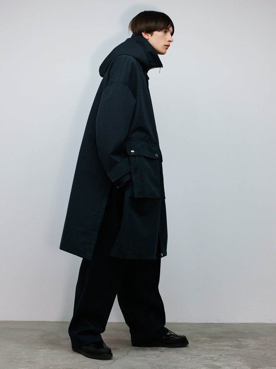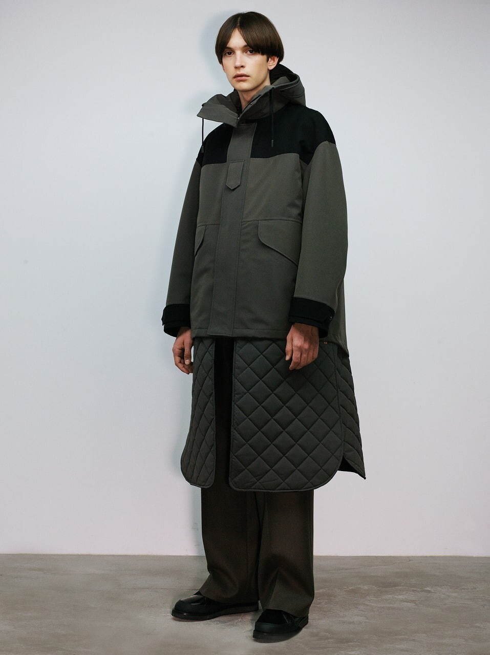 每一身的Look都采用单色迭代的设计语言并且融入了Kurahashi对于登山运动的理解,以一种山系的服饰风格呈现出来。大廓形的剪裁让秋冬的长款外套更具线条感,即使是拼接撞色处理也采用较为暗色系的黑色和军绿色相结合,这让我想起了TNF的一件秋冬夹克外套。如果你对极简风格很痴迷的话,我想THE RERACS 2020秋冬的男装是适合你的,并且适合大部分普通人穿着因为它对于穿着者的时尚度并不会有很高的要求,不过如果想要穿得出彩就需要驾驭者的自身气质以及一些配饰和鞋履的呼应,感兴趣的朋友可在文末THE RERACS官网中选购。