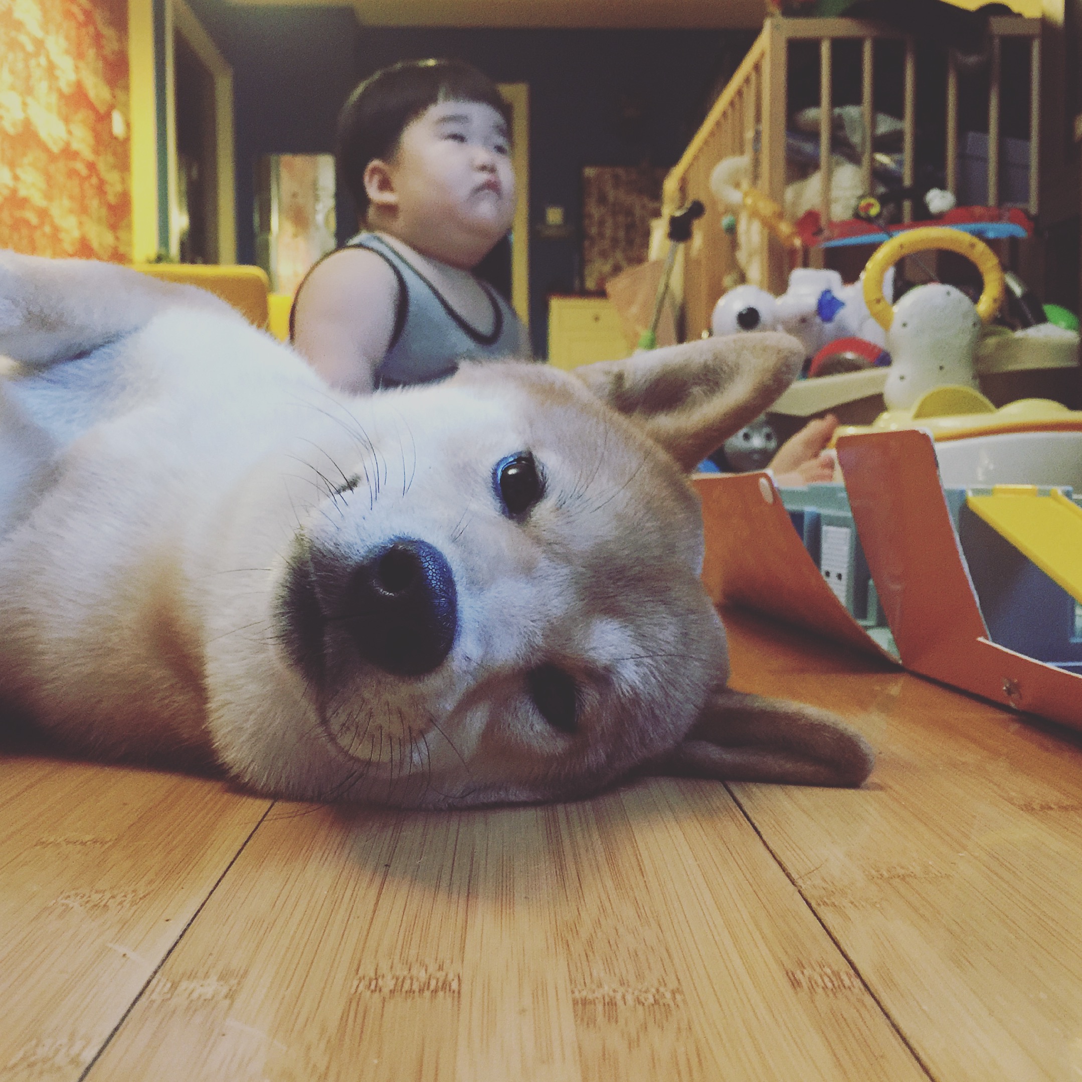 3:柴犬是非常逗逼的存在,他会没事就翻身平躺着睡,然后双脚分开,感觉非常猥琐有趣,是我们家的开心果哈哈。还有一点就是我们家建国对我儿子特别有耐心,秋秋因为是小孩子,扶触是没有轻重的,但是建国每次都很有耐心,也不会生气,非常包容我儿子,这一点让我非常感动!