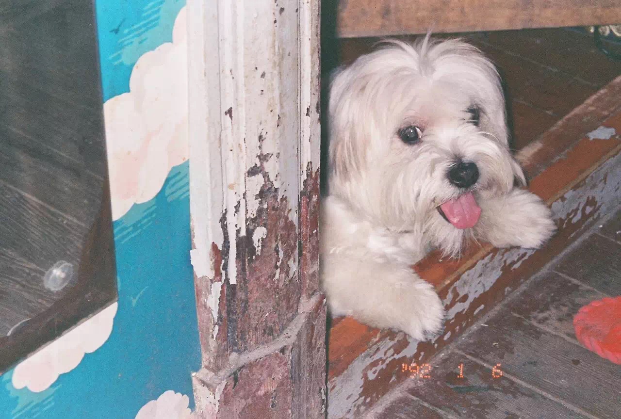 1:大家好,它叫Chuck,AKA洽洽香瓜子,今年6岁啦。其实它是我老婆几年前领养的,现在买一送一就等于是我的狗啦。Chuck是一条串串,血缘众说风云,但我觉得它比较像棉花面纱犬。当初我的老婆想去领养活动上领养一只猫,结果一眼看到它就走不动了。