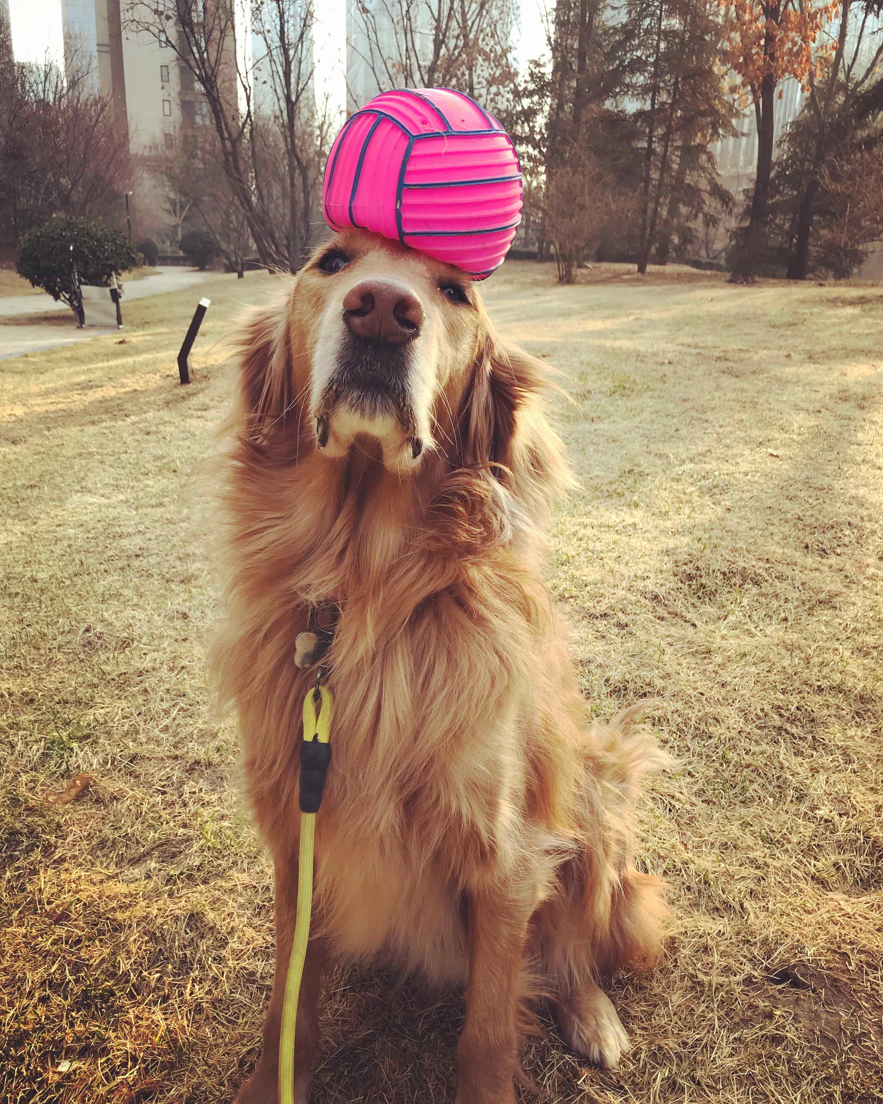 1:当初想要一只金毛巡回犬是因为各种书籍都介绍说金毛是性格温和的狗,能帮人巡回猎物。所以把布丁抱回家的时候,内心里是有一个小小的期待,就是等它长大懂事以后,能在我进门的时候,把我的拖鞋叼给我。现在它已经6岁了,早就学会了叼取各种物品。
