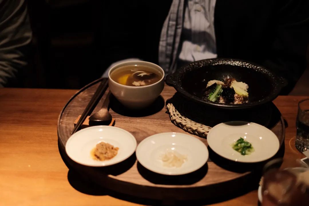前面每道菜都小小盘,肉也小小块,颇有些担心吃不饱,但米饭热汤下肚,也有七八成饱腹感了。