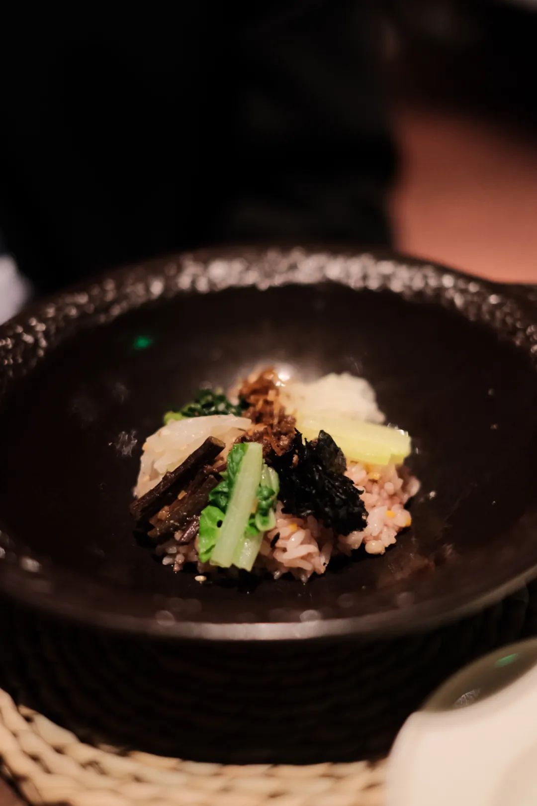 另一套就比较重口一些,经典的石锅拌饭,配一碗辣鱿鱼萝卜汤,配方来自 Chef Tom Ryu 的祖母。