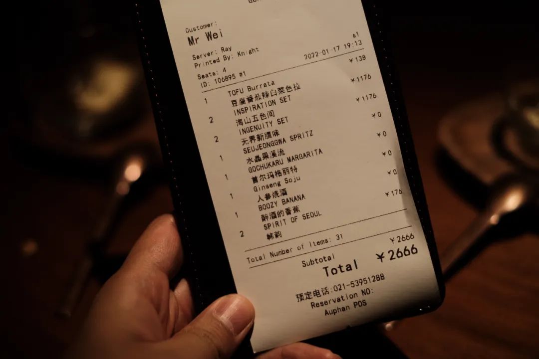 买单,四个人一共¥2666。