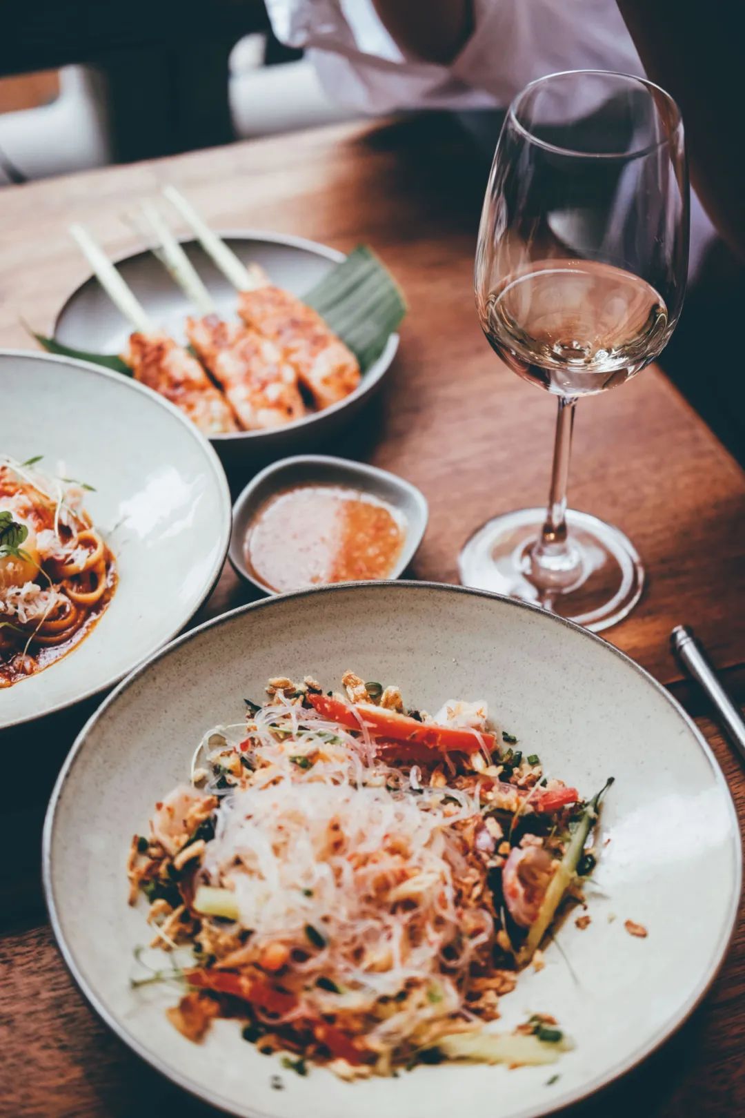 fatty angel 是 THE TASTING ROOM 团队特邀新加坡主厨共同打造的融合餐吧,主营东南亚风味的美食和酒。餐厅地面选择室内非常少见的柏油沥青,营造一种熟悉且放松的感觉,踩在上面就像是散步在公园。