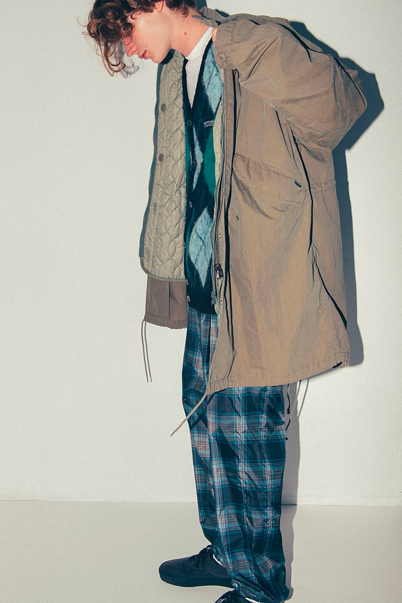 以宽松舒适的穿着体验为主,thisisneverthat 在这一季的秋冬呈现了不少透着浓浓超大剪裁与 90s 宽松复古风的服饰,诸如半拉链摇粒绒套头衫、连帽衫、运动裤、尼龙长裤、派克大衣、开襟衫等等。其中值得瞩目的主推单品包括一件印有精美 paisley 图案的棕色连帽衫、胸前饰有棒球编织徽标的粒绒连帽衫、湖蓝色豹纹夹克等。