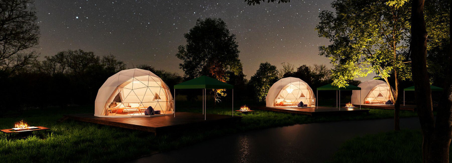 同时,glamping设施还包括一系列活动,如砍柴、收集昆虫、玩在河岸捡到的石头,人们可以在此尽情享受儿时乐趣。