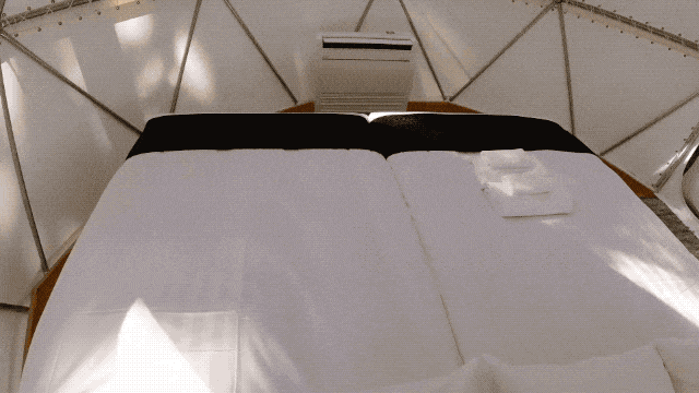 每个球形帐篷里没有多余的小饰品或豪华家具,相反,一贯从简,一张舒适的床,空调,和简易的木质家具就是这个帐篷里的所有。