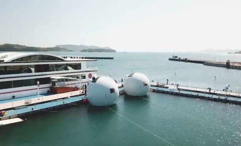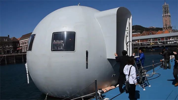 这外形炫酷的漂浮胶囊名叫水上酒店(Mizukami Hotel)位于日本长崎县佐世保市的主题公园豪斯登堡荷兰城(Huis Ten Bosch)。