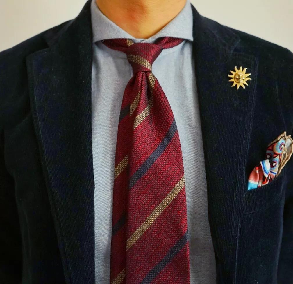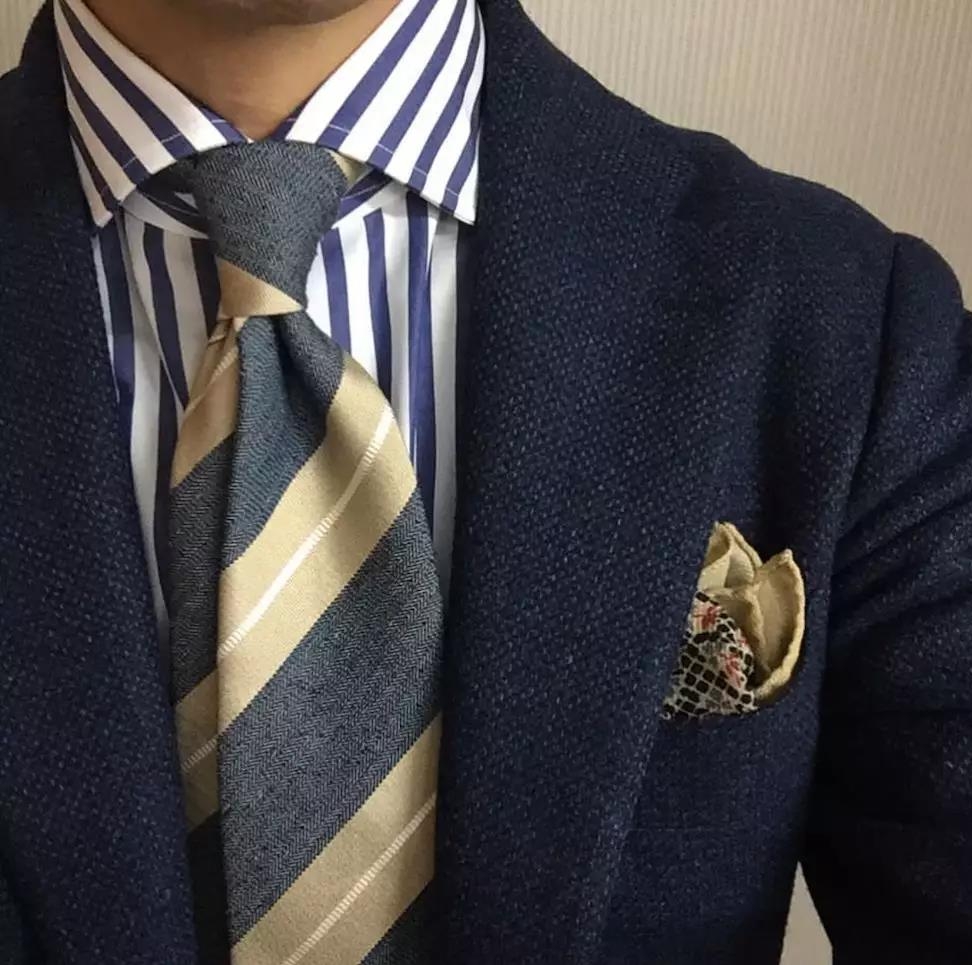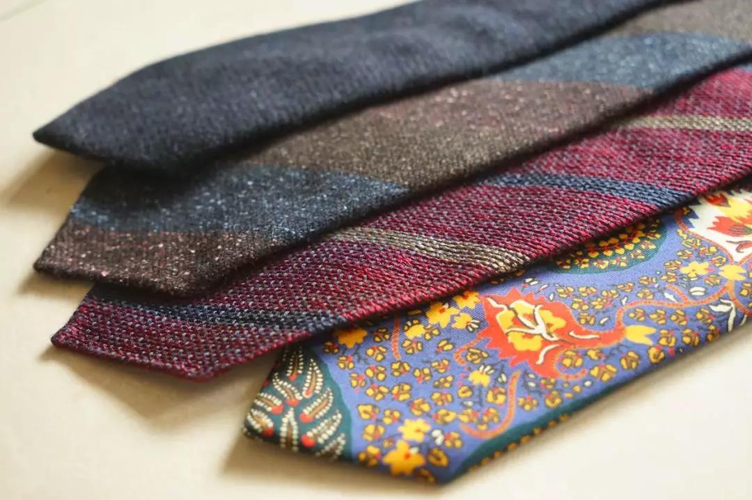 呢子、羊毛、丝绸领带有着不同的厚度与表面光滑度,根据季节、场合选择不同面料与系法非常重要。