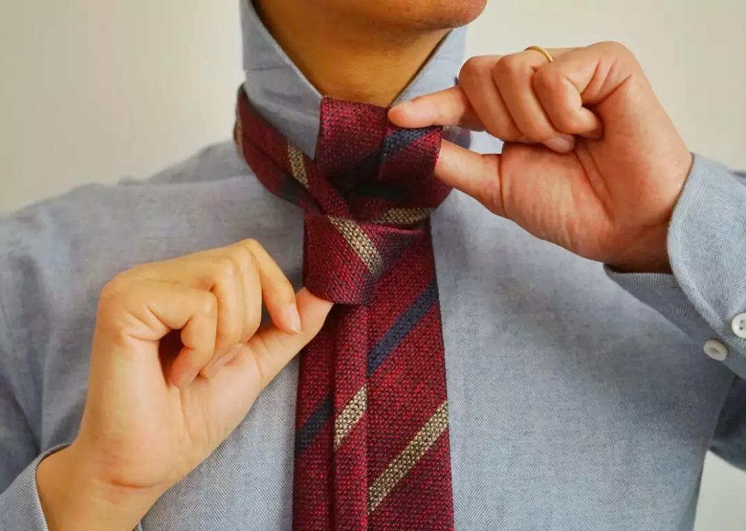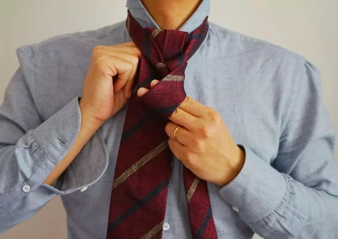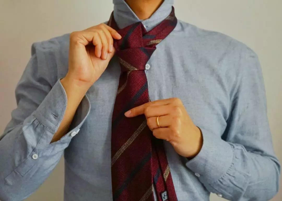 名声最大的温莎结是造型失败的重灾区,结型饱满的温莎结适合出席商业谈判及政治场合(比如去开政协)。一般人平时系过于隆重,稍有不慎就会毁掉一身造型。