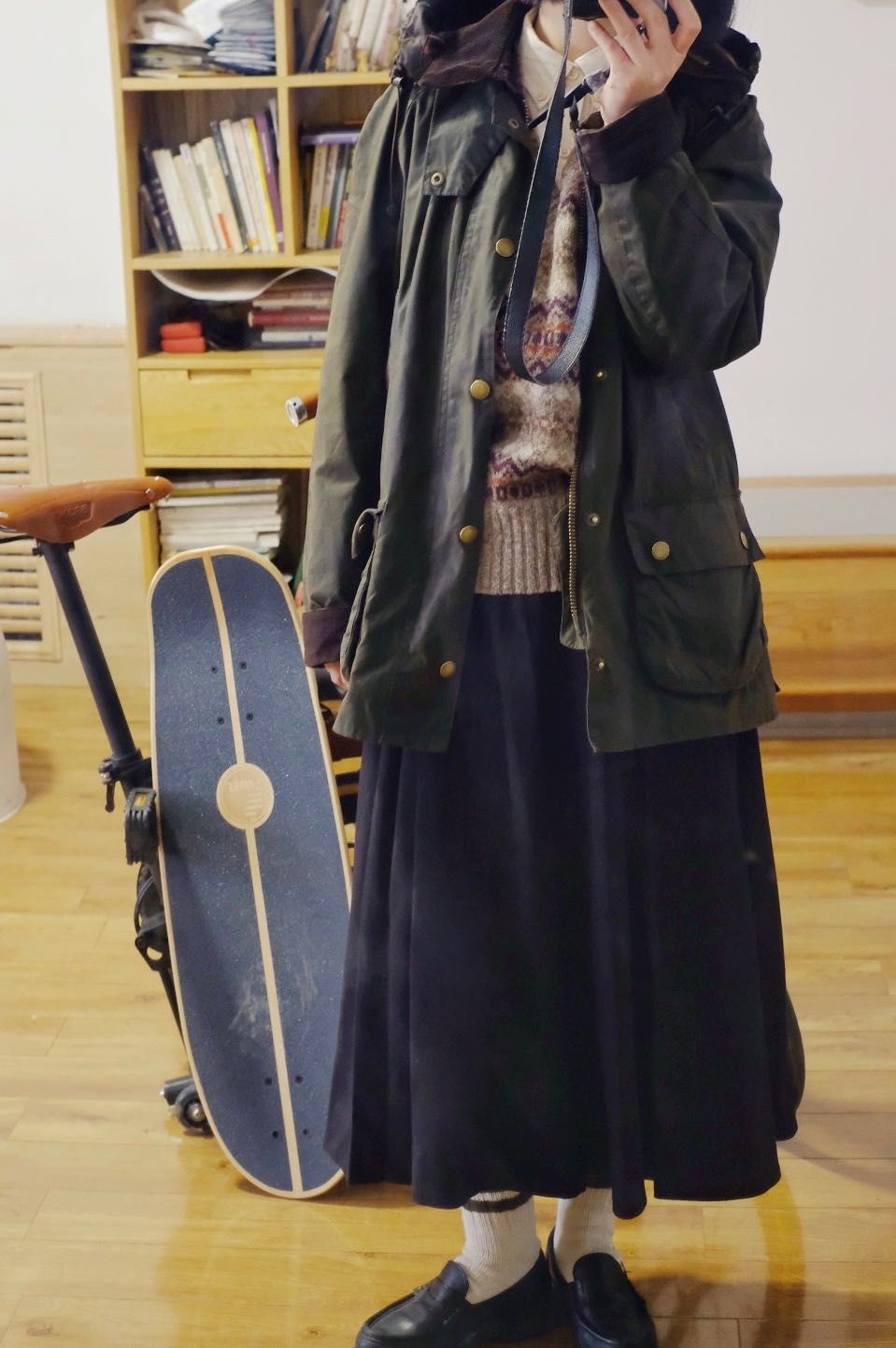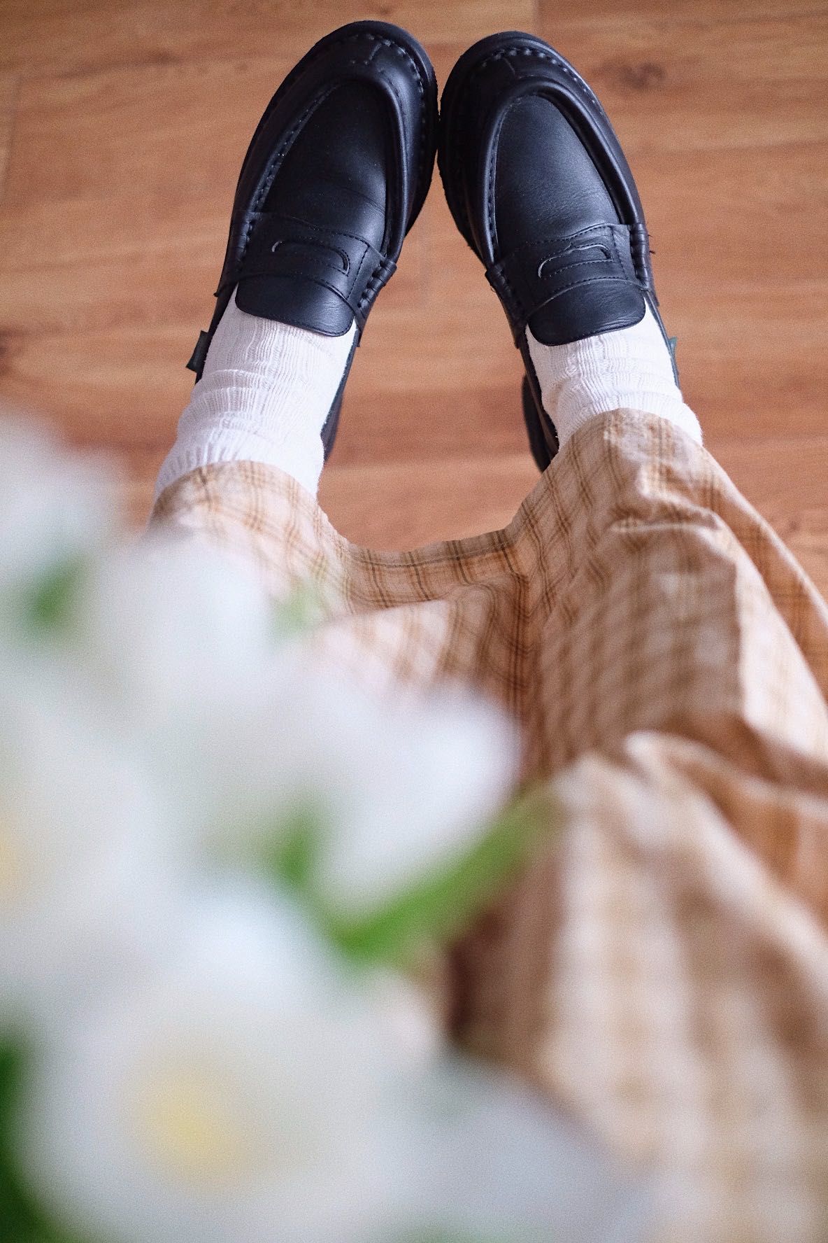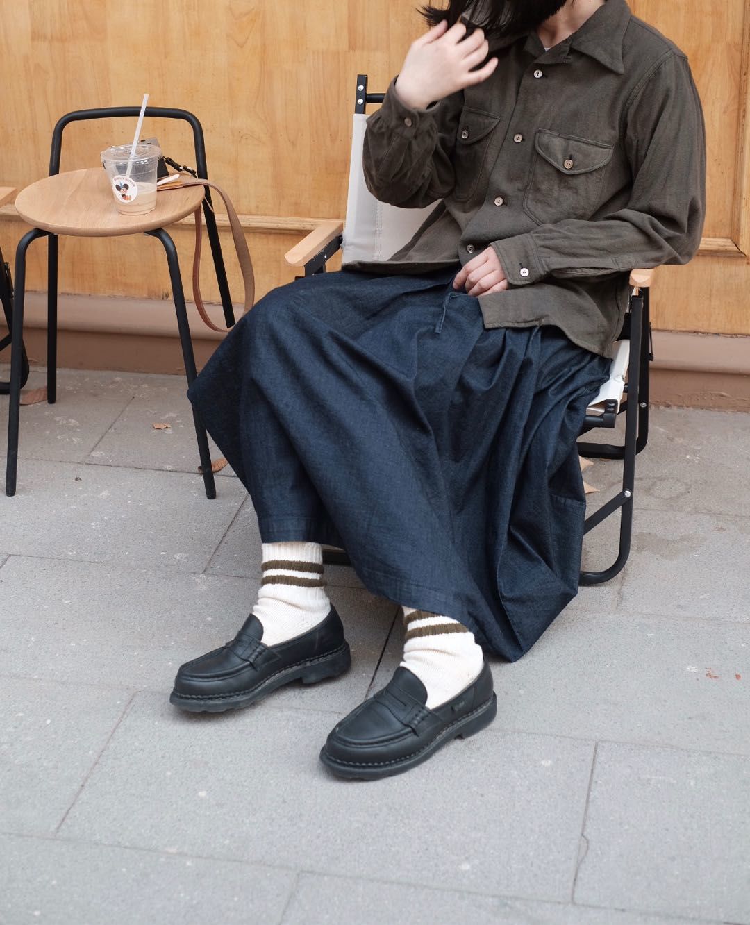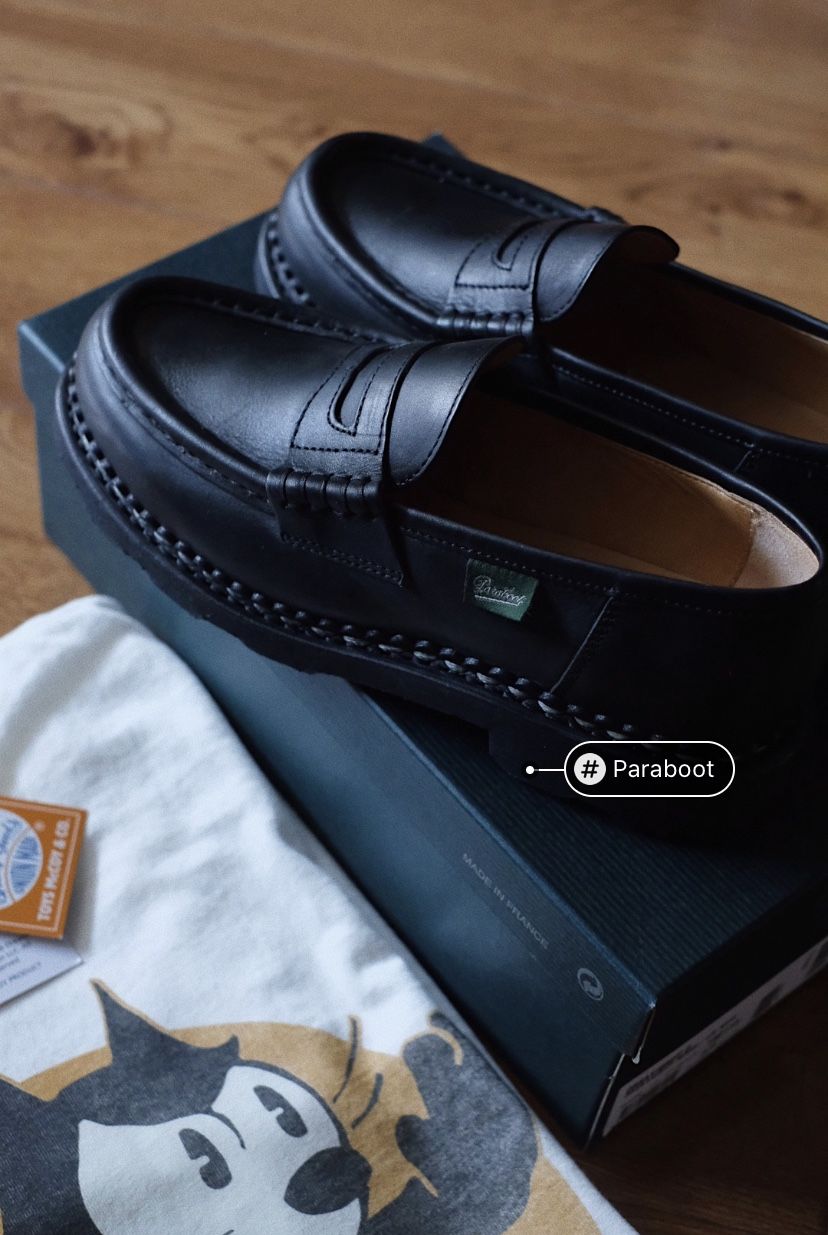 除了毛衣外,鞋子和袜子也是很好提升整体穿搭质感的细节部分,Paraboot的Penny Loafer就很完美地融入整体的穿搭中,白色毛圈袜和墨绿色的长袜在各自的搭配中都跟上半身的单品有所呼应,提升了整体的造型感觉。