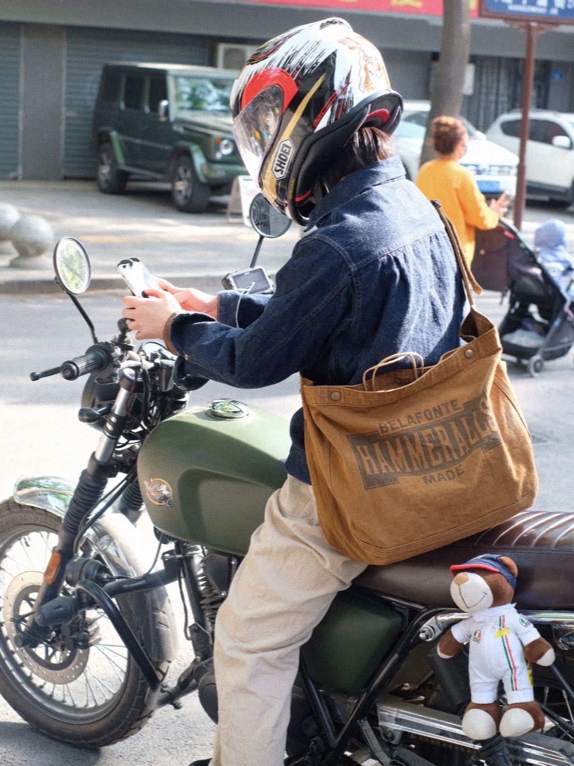 阿美咔叽风格的实用性和实穿性是很高的,除了“打工”的通勤穿搭,也可以在骑行的时候穿着,像机车皮夹克和牛仔夹克在秋冬季都很防风,春夏穿军事夹克或者一件印花Tee配上牛仔裤或者卡其裤,就足够拉风了。