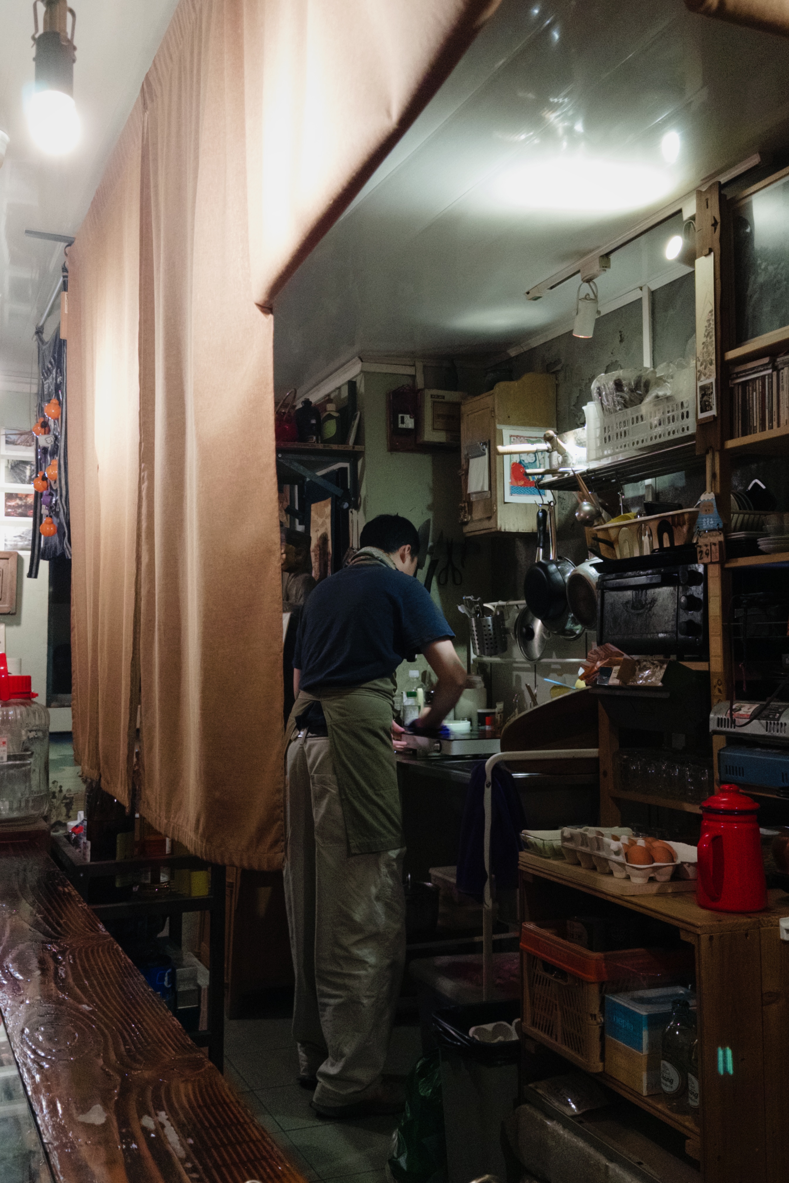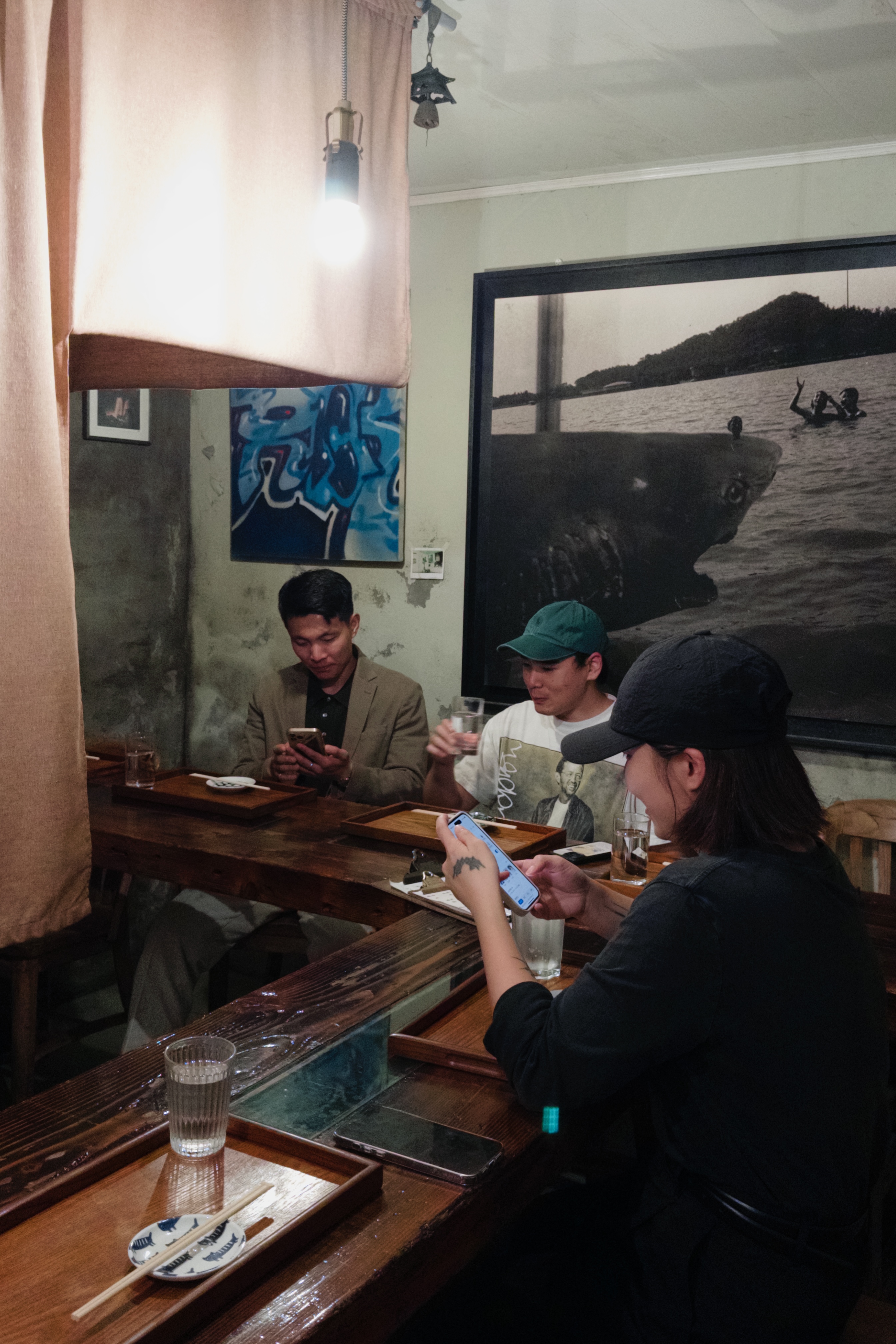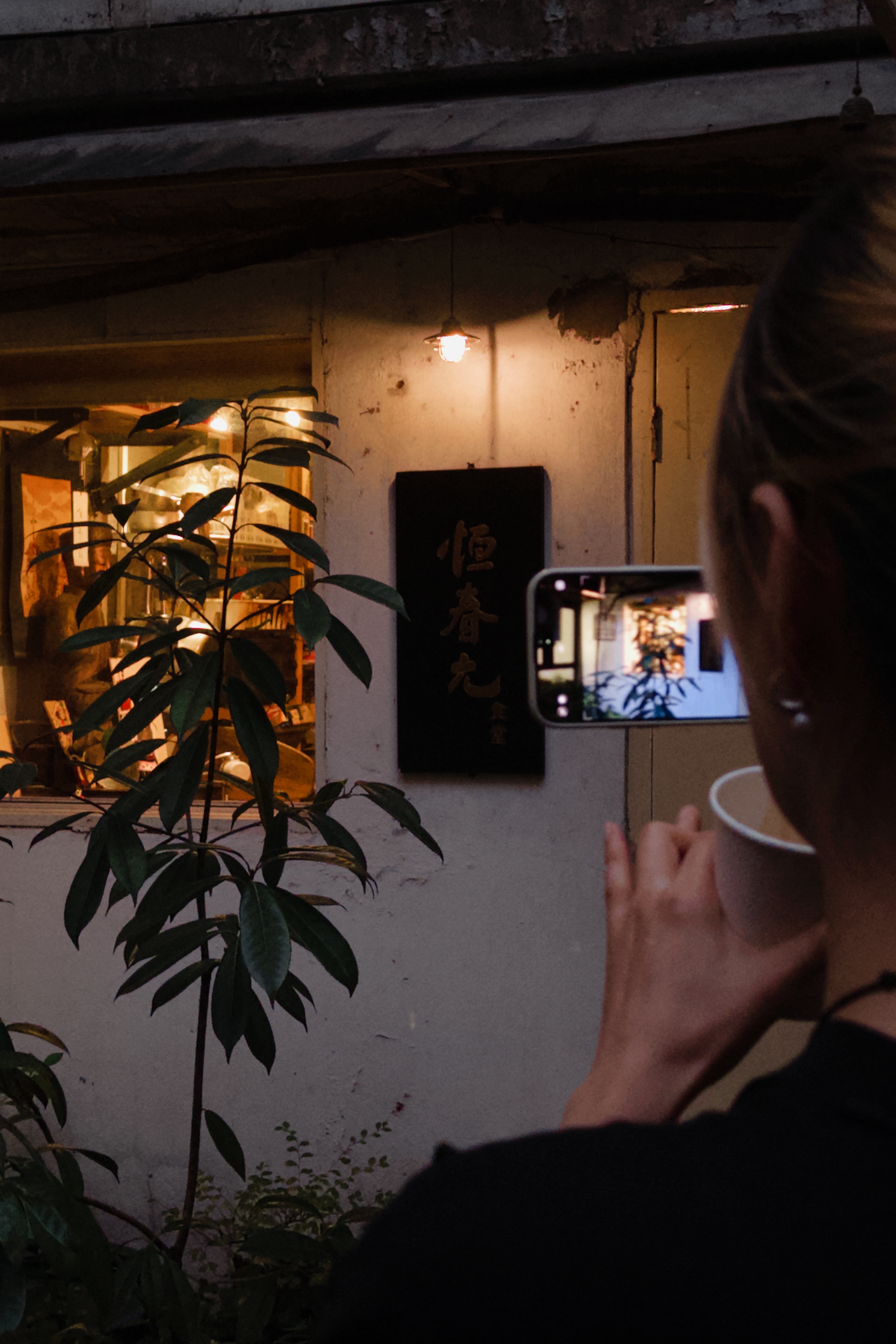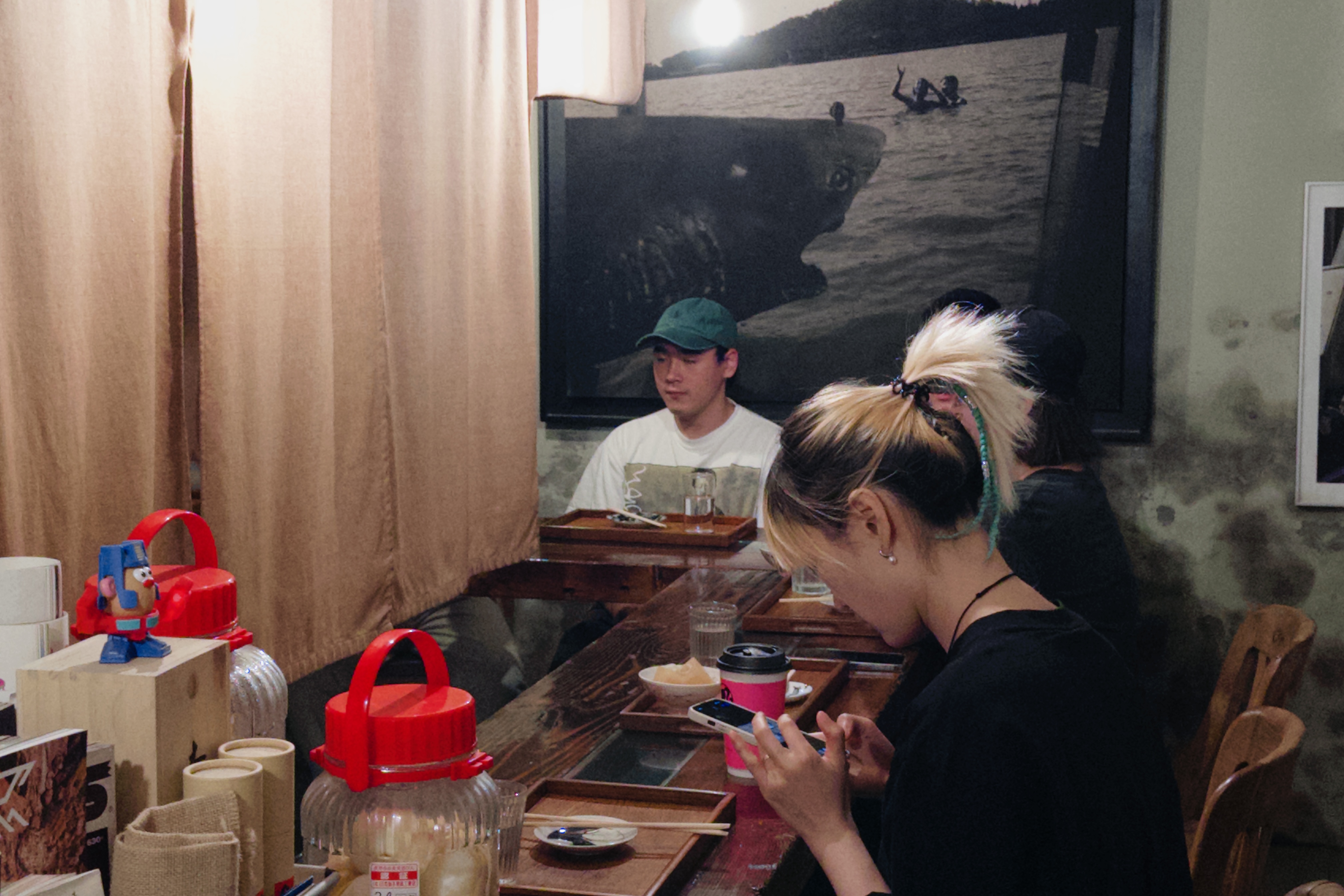 藏身于巷子之中,推开铁门,便能见到恒春元被绿植簇拥着的店门,进入店内,温暖的木制结构、井井有序的餐具与墙上悬挂着的摄影作品,仿佛进入了一家日式居酒屋。