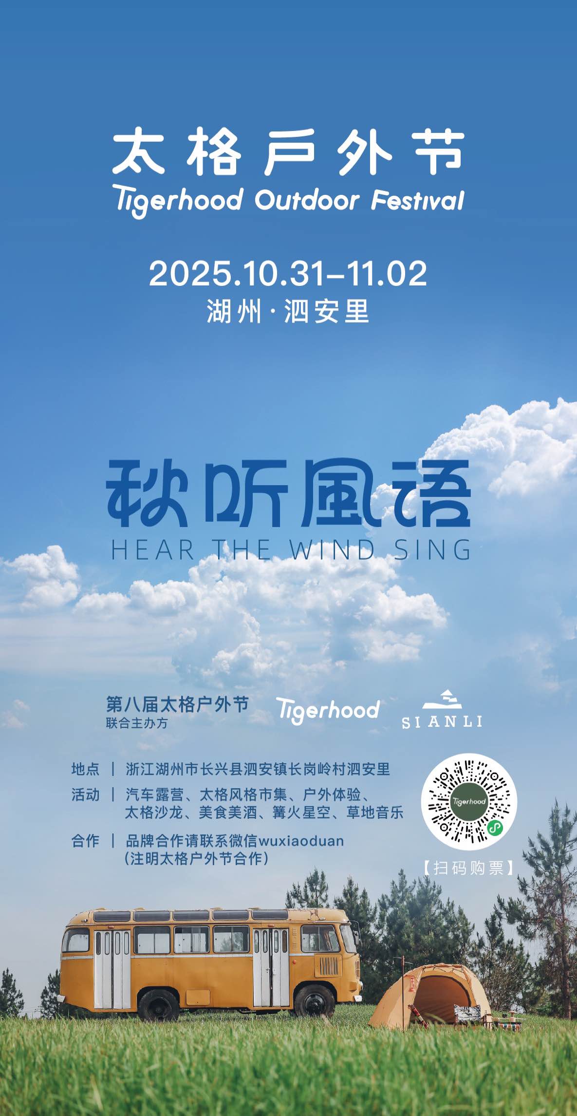 第八届太格户外节,由太格有物携手泗安里联合主办,活动时间为2025年10月31日-11月2日,并以「 秋听风语 HEAR THE WIND SING 」为活动主题。秋风吹落第一片落叶,太格户外节邀你开着露营车,共赴泗安里山野,解锁秋日最治愈的欢聚记忆。