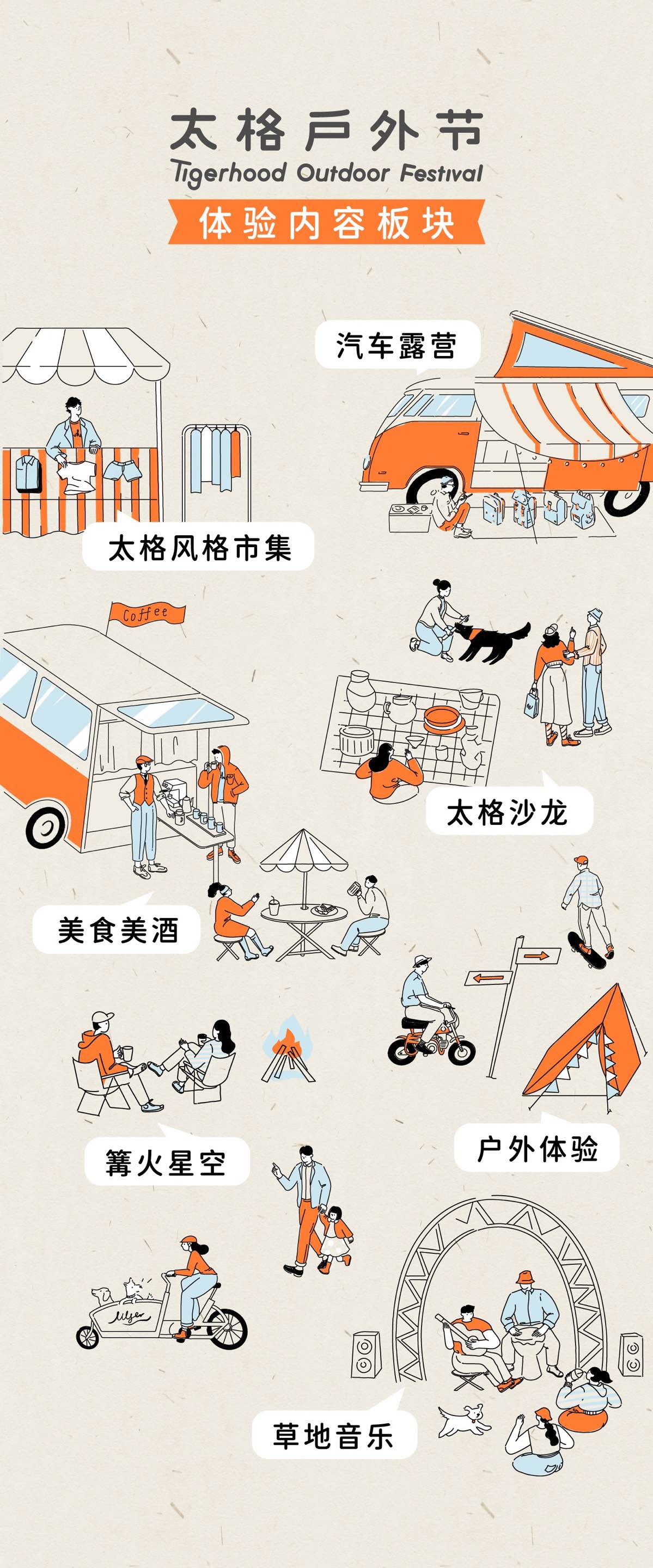 活动:汽车露营、太格风格市集、户外体验、太格沙龙、美食美酒、篝火烟花、草地音乐