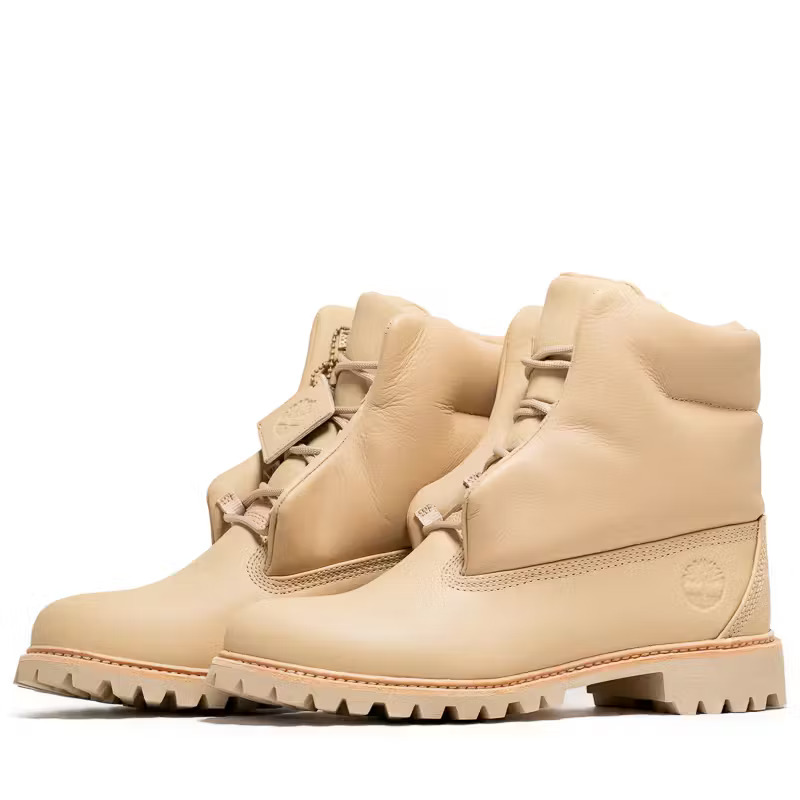 首先,新版本的靴面完全由全粒面皮革制成,甚至内衬也加持顶级皮革素材,以取代典型的磨砂皮革式样。更奢侈的是,Timberland 还为其升级至蓬松结构——在靴子上部填充 PrimaLoft®️ 400g 隔热材料。当然,豪华皮革与蓬松隔热材料的应用也提高了这款靴子的售价,对比普通版的 170 美元,升级版为 250 美元。