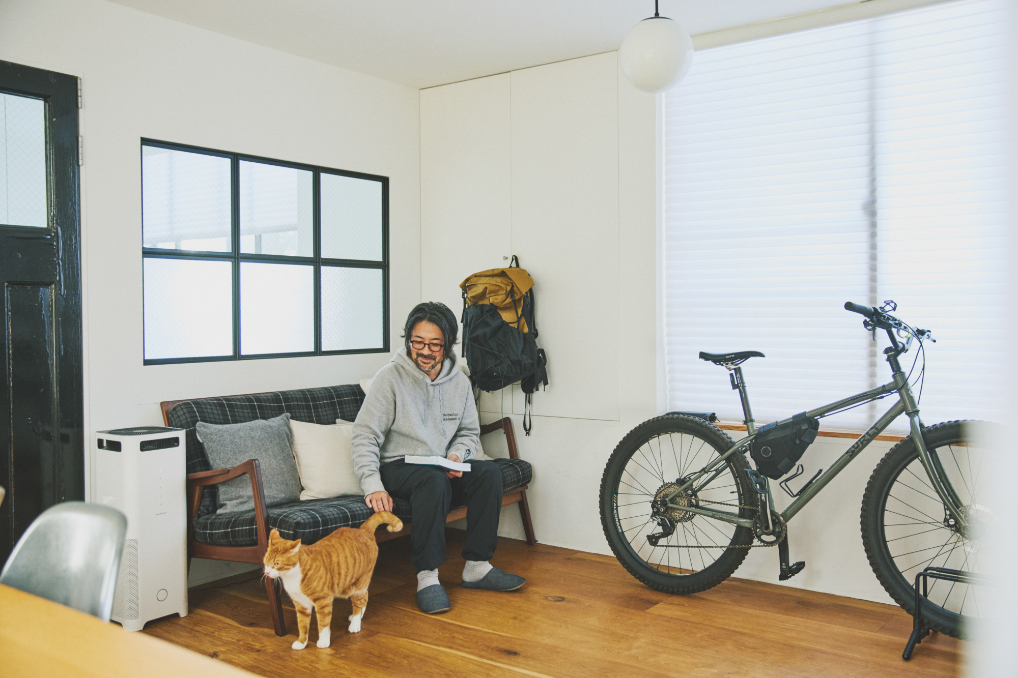 购买新房之后,因为室内过于老旧,所以首先要做的肯定是找专业的装修公司去沟通自己的想法。第一步他们先将整体墙面进行了修复和刷白,此外滝沢時雄因为只和猫住在一起,不需要太大的隔断,所以他把没必要的墙体也全部拆除掉,这样会让房间的活动面积变大。包括之前的踢脚线也都全部拆除,门窗则选为黑色只为让视觉风格看起来更为极简。