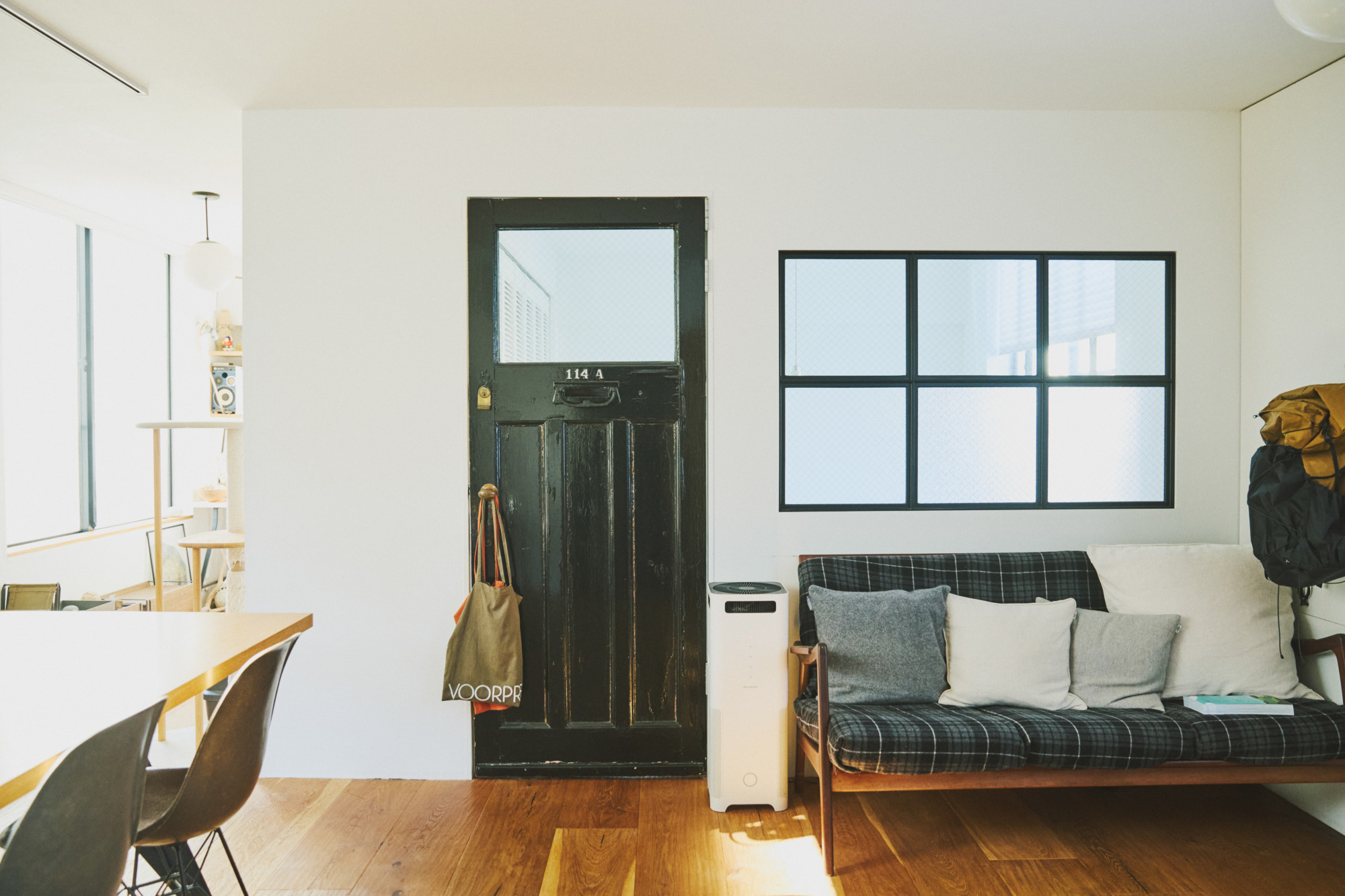 不过在家具的选择上则需要讲究一些,滝沢時雄选择了一扇英国20年代的古董门,甚至上面还带有当年的门牌号。为了配合这种复古氛围,之前的彩窗也被他拆掉,换成了如今的黑色铁窗。