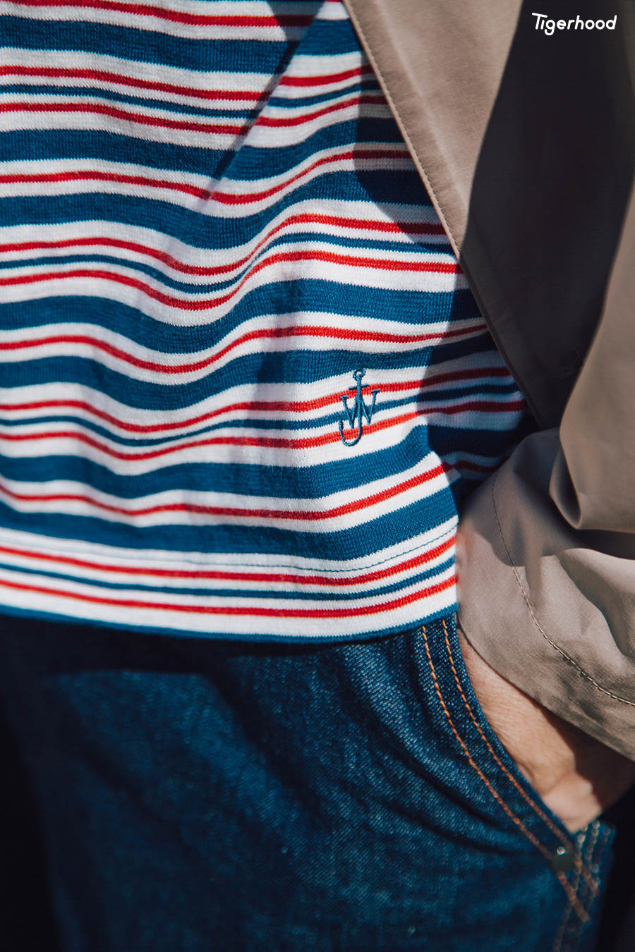 新一季的色彩条纹T恤,不规则的条纹设计,瞬间唤醒你的多彩春天。同时细节处的 JW ANDERSON 经典 LOGO 也是非常吸睛的时尚元素。