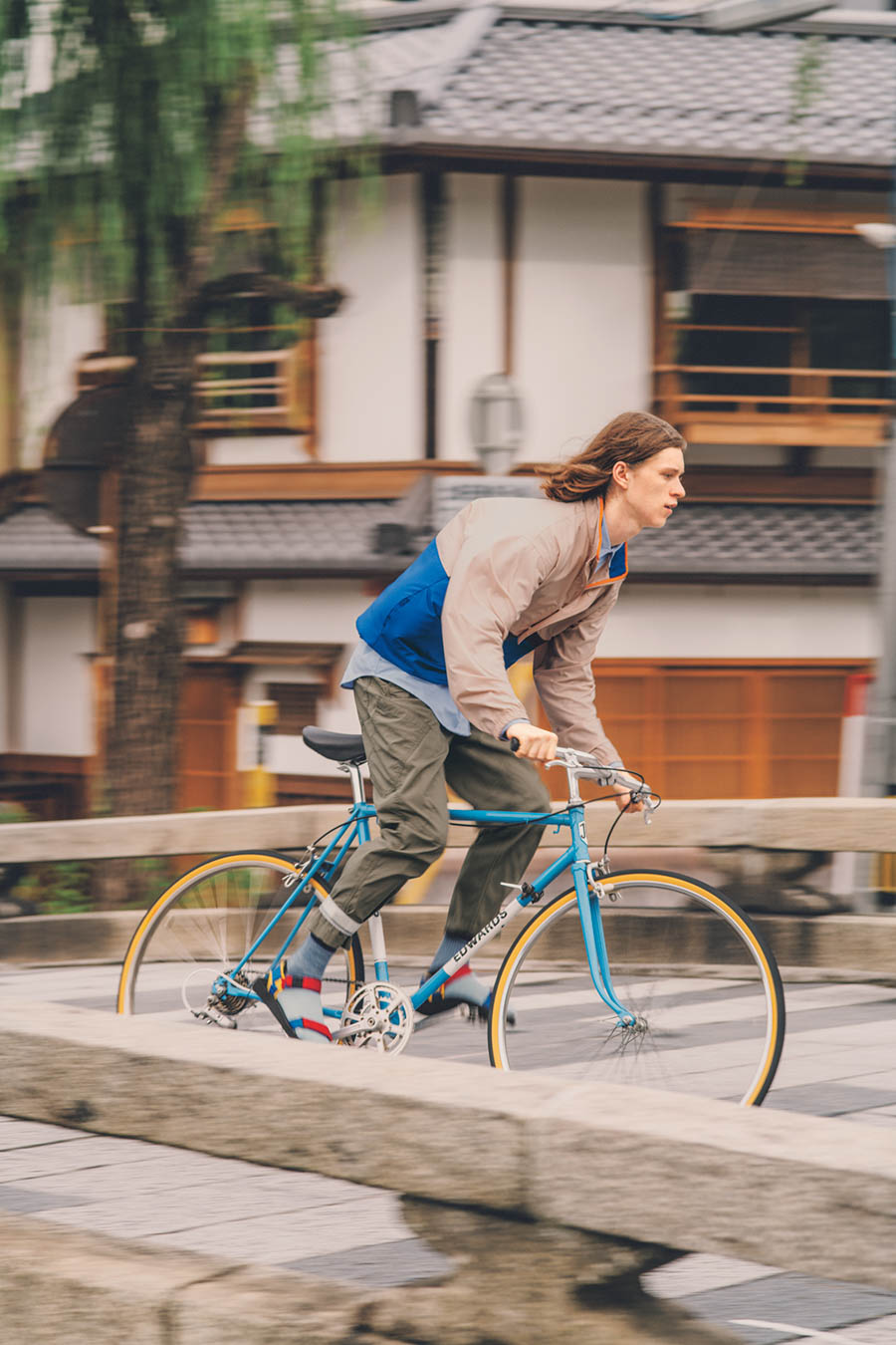 Jonathan Anderson 本人对于日本文化一直充满了好奇之心,除了对京都历史文化建筑感到惊叹之外。还通过本季 UNIQLO and JW ANDERSON 合作系列的多种单品,与京都产生了不同的共鸣,正如在京都都市生活中扮演着重要角色的自行车。