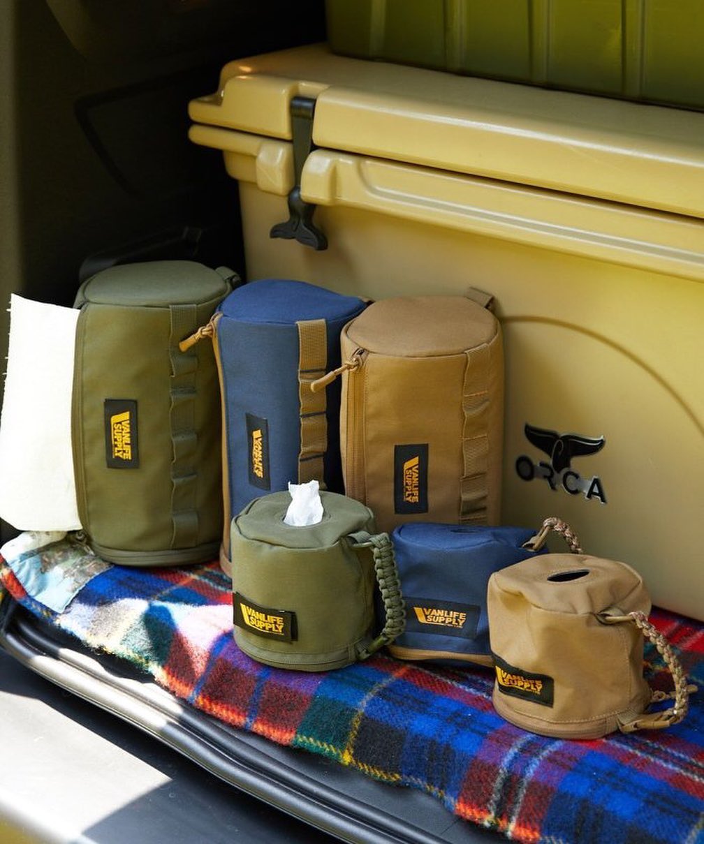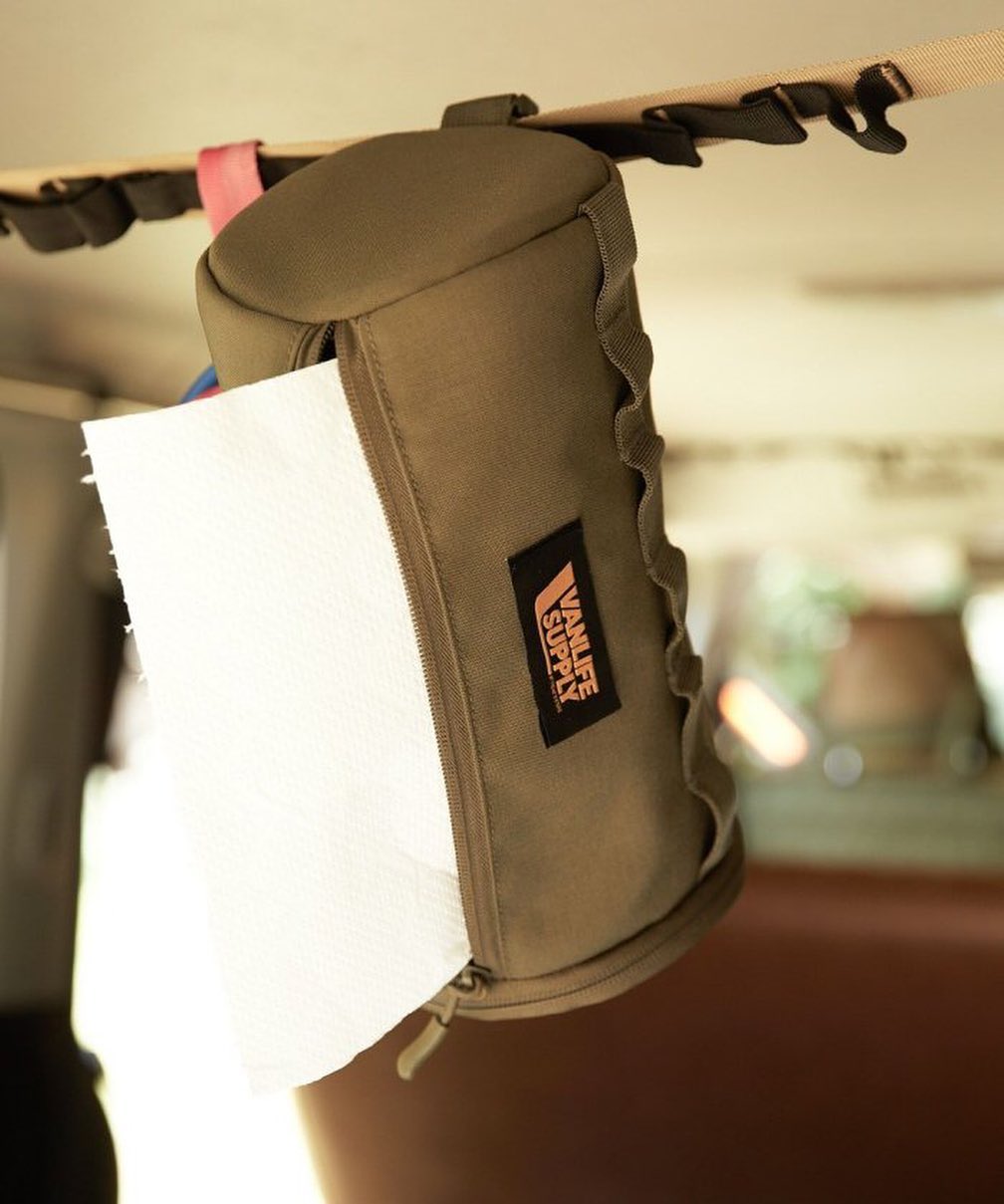 纸巾盒一定是很多露营玩家非常注重的细节之一,为此 VANLIFESUPPLY 也推出了各式不同风格的纸巾收纳包。大家可根据自己的喜好进行选择,日常既能挂在车中,还可以在营地中单独取下使用。