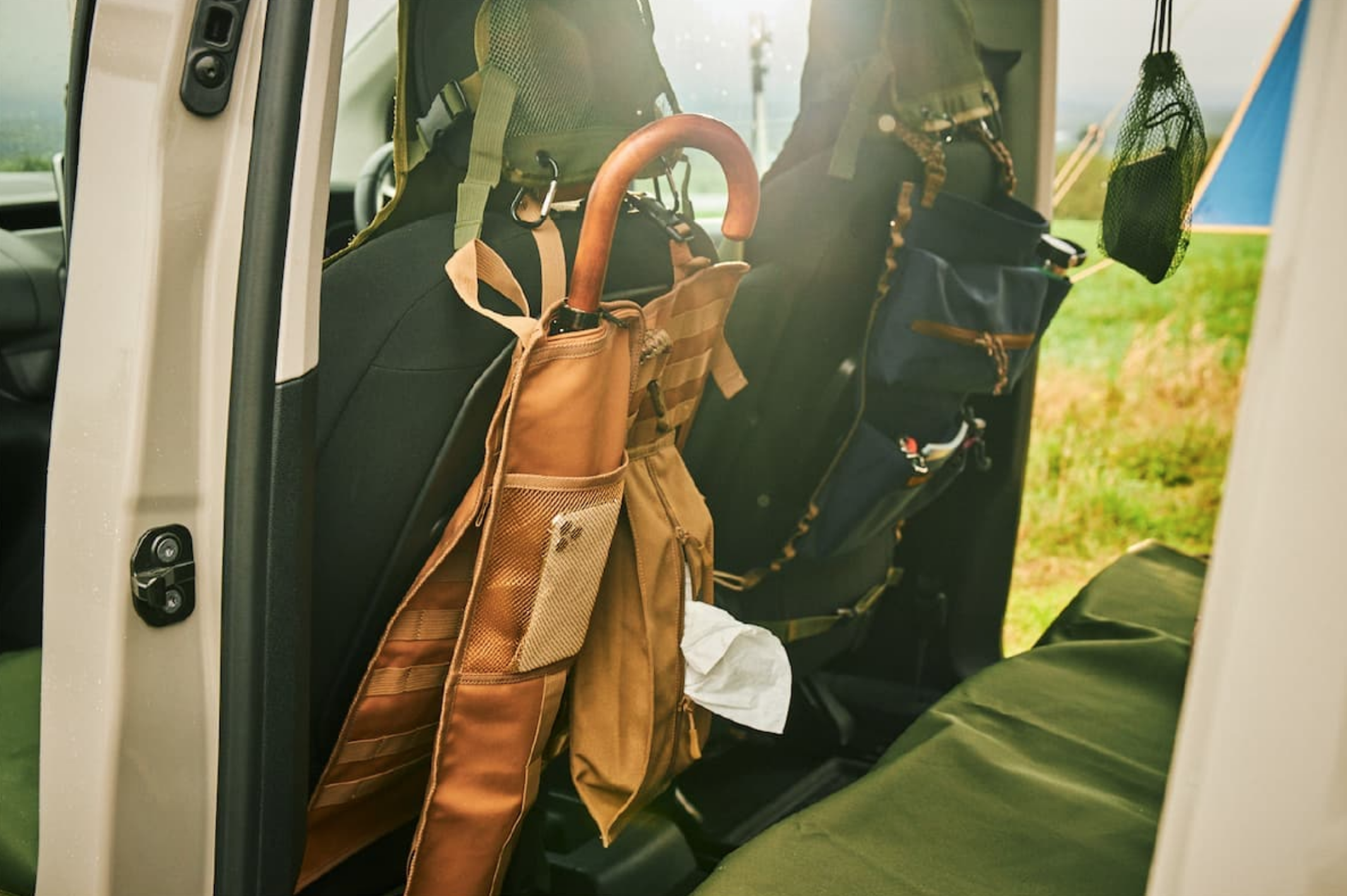 VANLIFESUPPLY 推出的座椅挂包也是一款非常实用的单品,日常可以装纸巾或者手机及充电宝等小物品,也省去了你要随时起身拿取物品的麻烦。