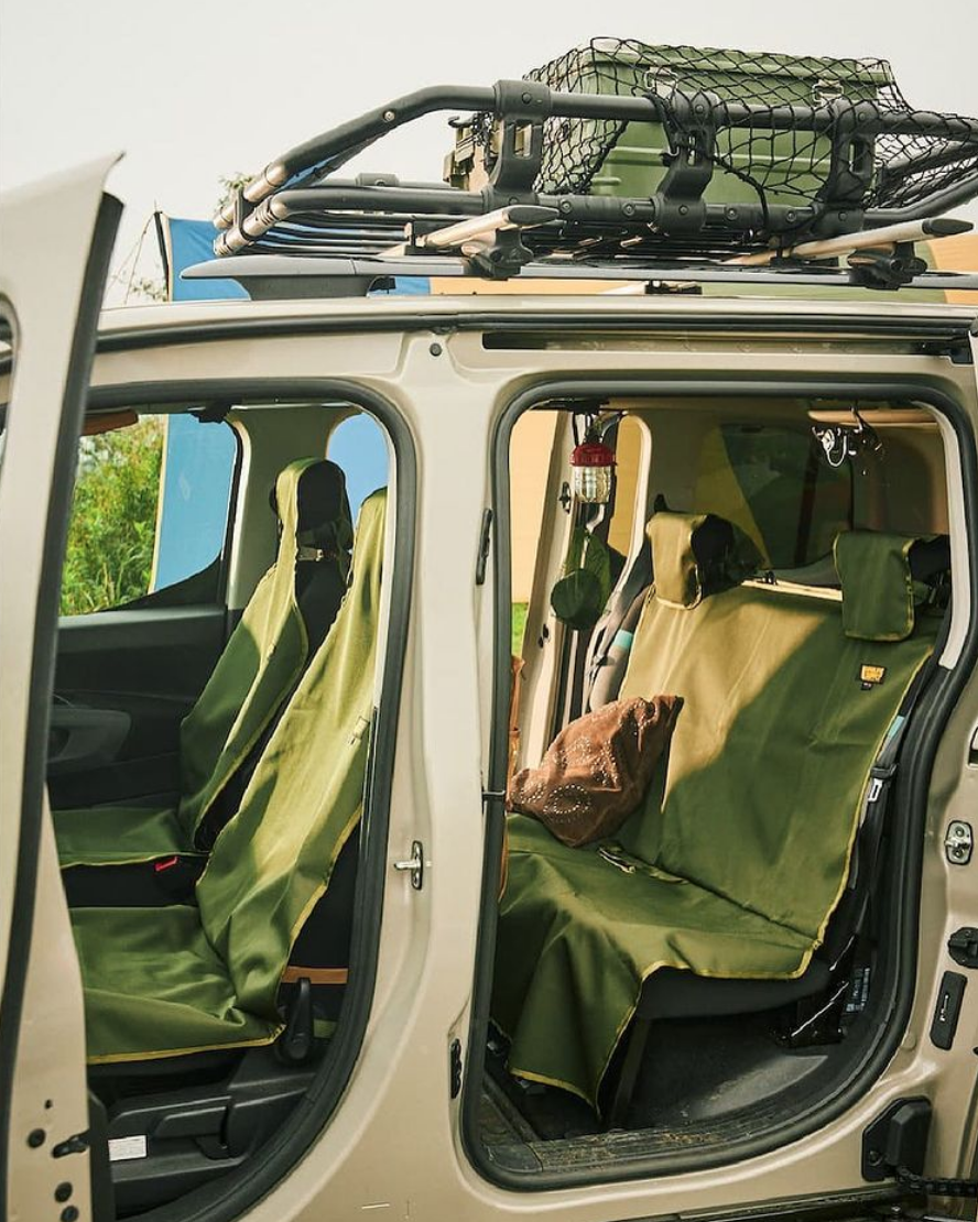 很多时候大家都喜欢携带宠物出去露营,这样很容易将汽车坐垫弄脏。但有了 VANLIFESUPPLY 的汽车防护坐垫之后,就不用担心。PVC 材料既耐磨,又防水耐脏,而且细节处的收纳装置还方便你未来搭配靠枕一起使用。