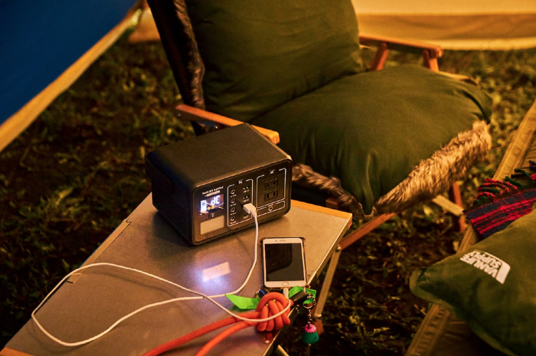 户外电源一直都是重要的露营装备,VANLIFESUPPLY 所推出的户外电源重量为2.3kg,日常可以给手机充电大约20次,平板电脑约为8次,轻便且实用。