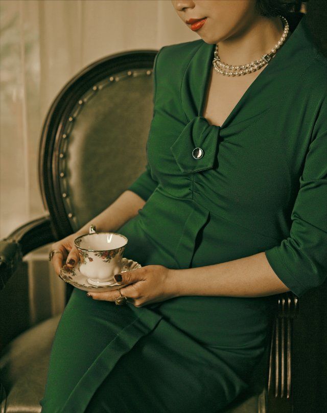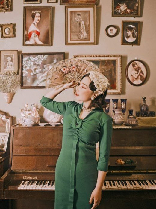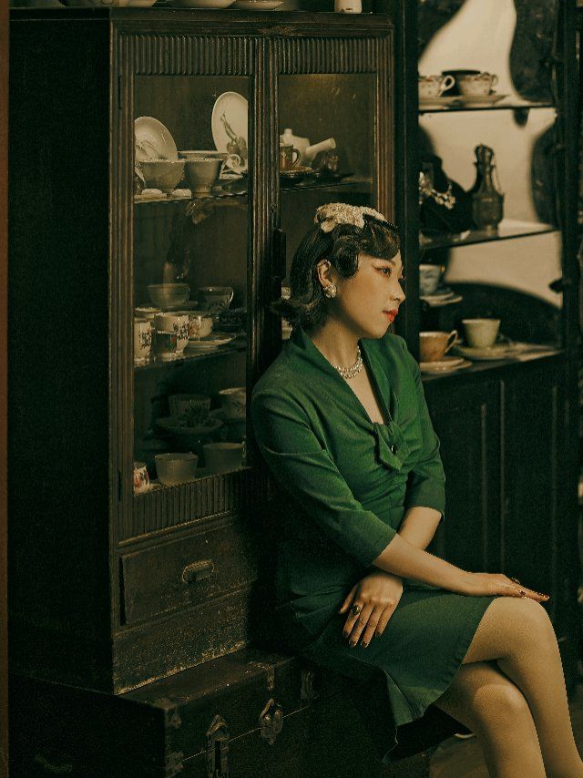 穿上旗袍和连衣裙后,她温柔端庄的特质就显现出来了,这样子无论是坐在自己的店铺里,还是走在外滩旁边的圆明园路上,都能完美地融入环境里。