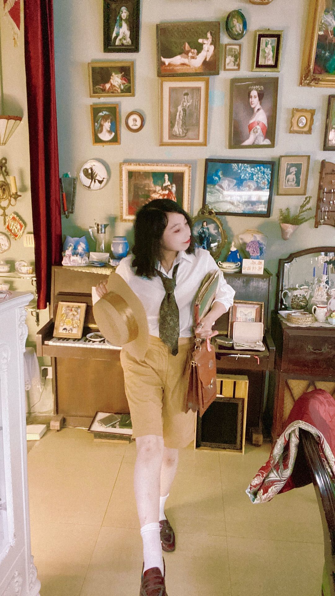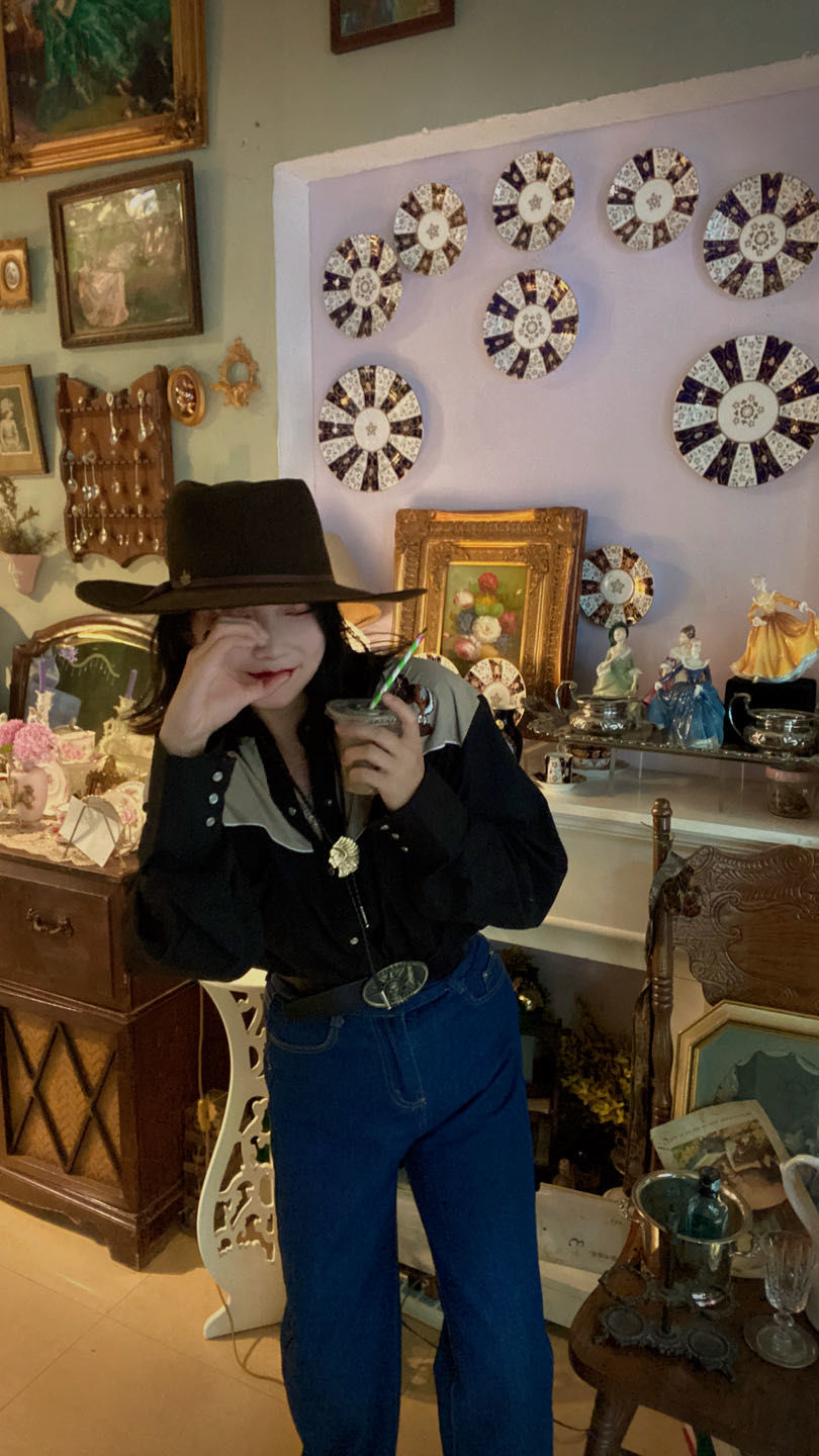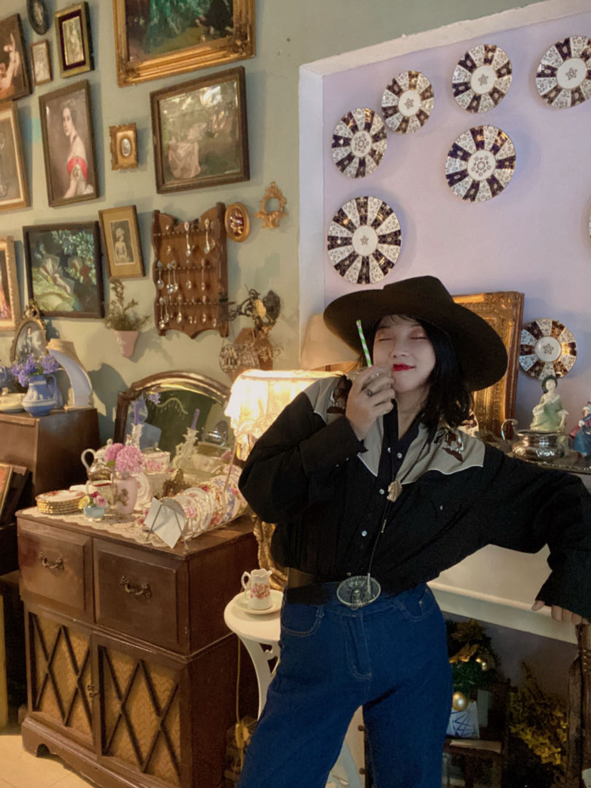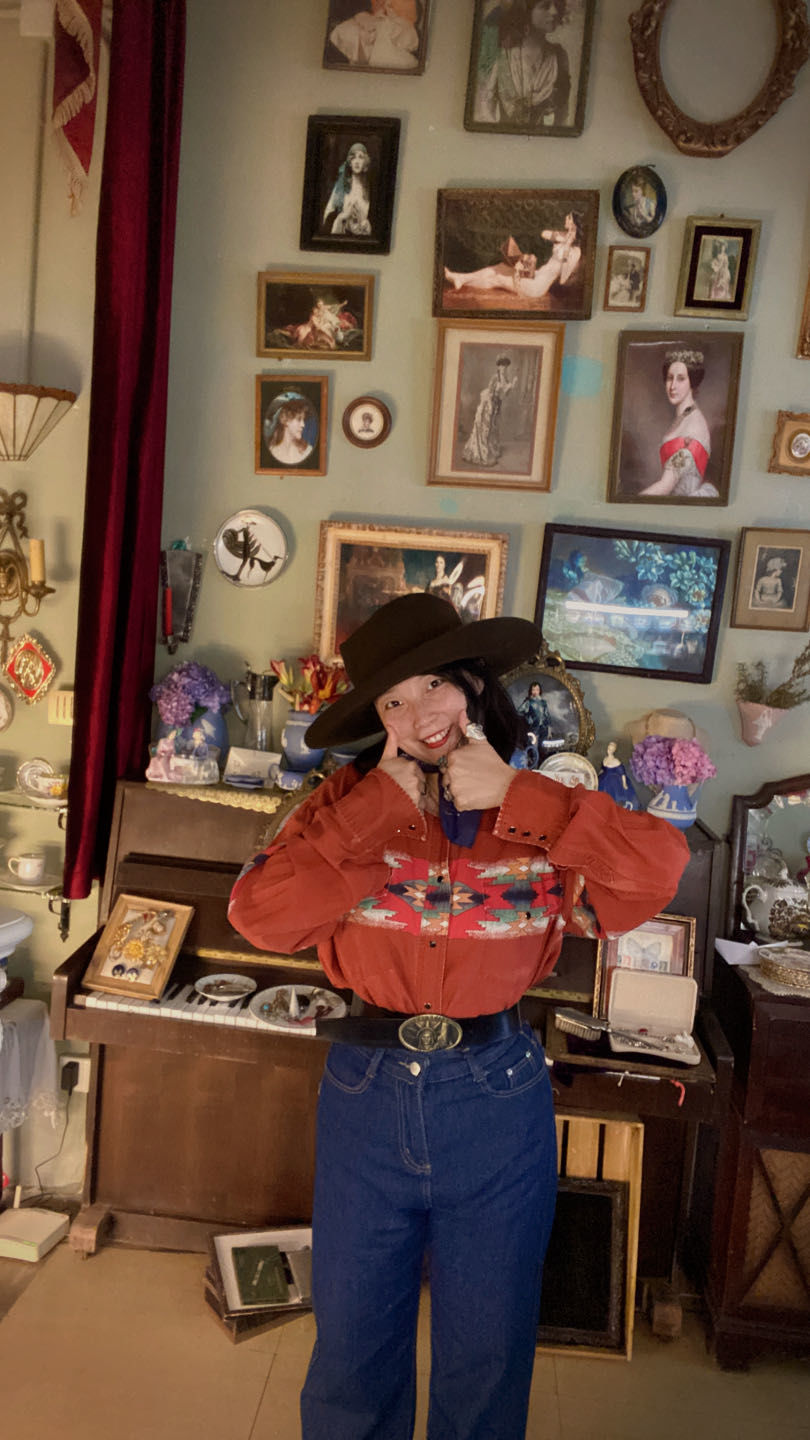 除了她店铺的风格是那么的复古风以外,她本人也是一个十足的复古穿搭控,时而穿着复古牛仔,好似《黄石》里的女主角;时而穿着复古绅士,好似《唐顿庄园》里的绅士;时而穿着复古旗袍,好似民国时期的优雅女士。