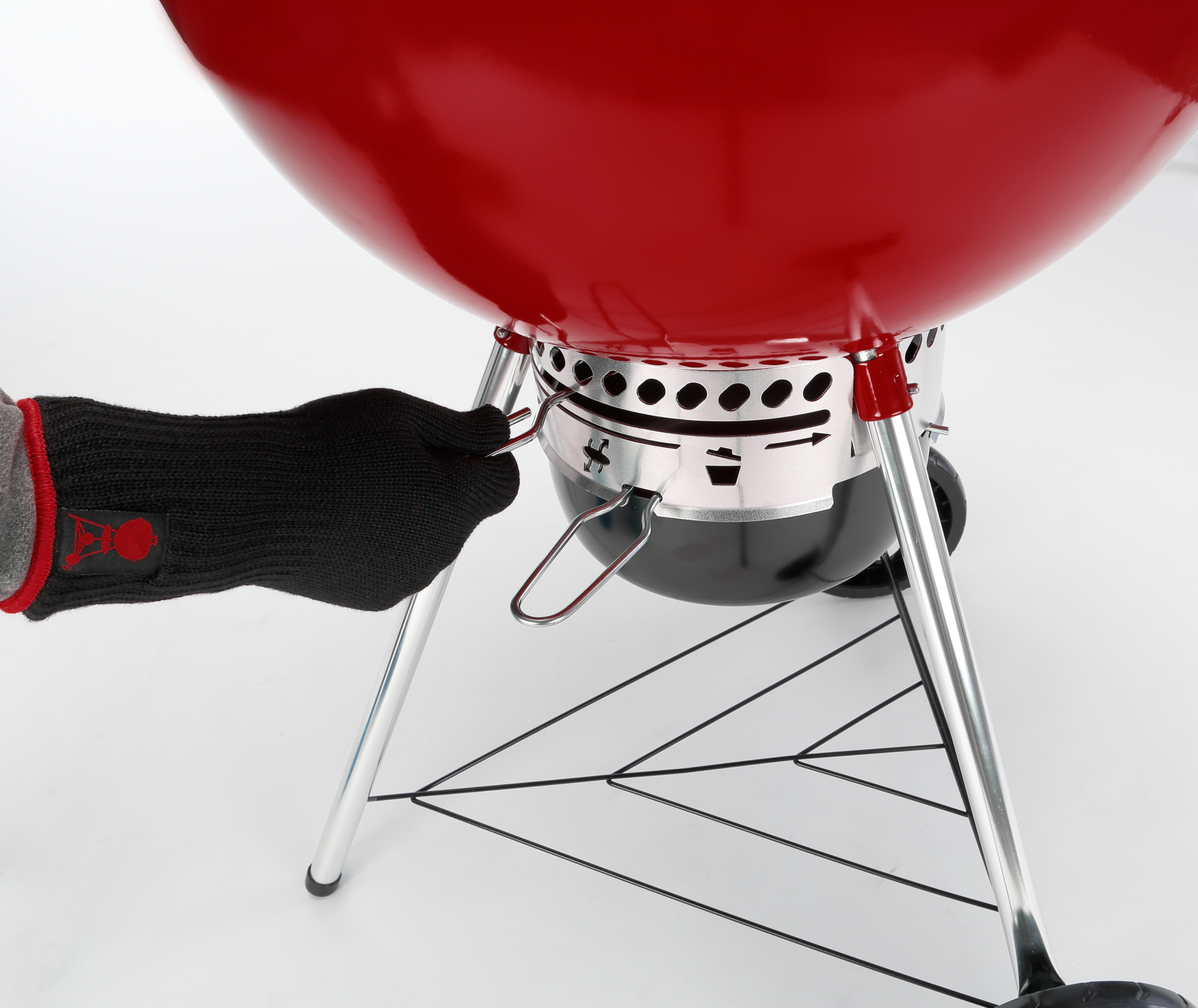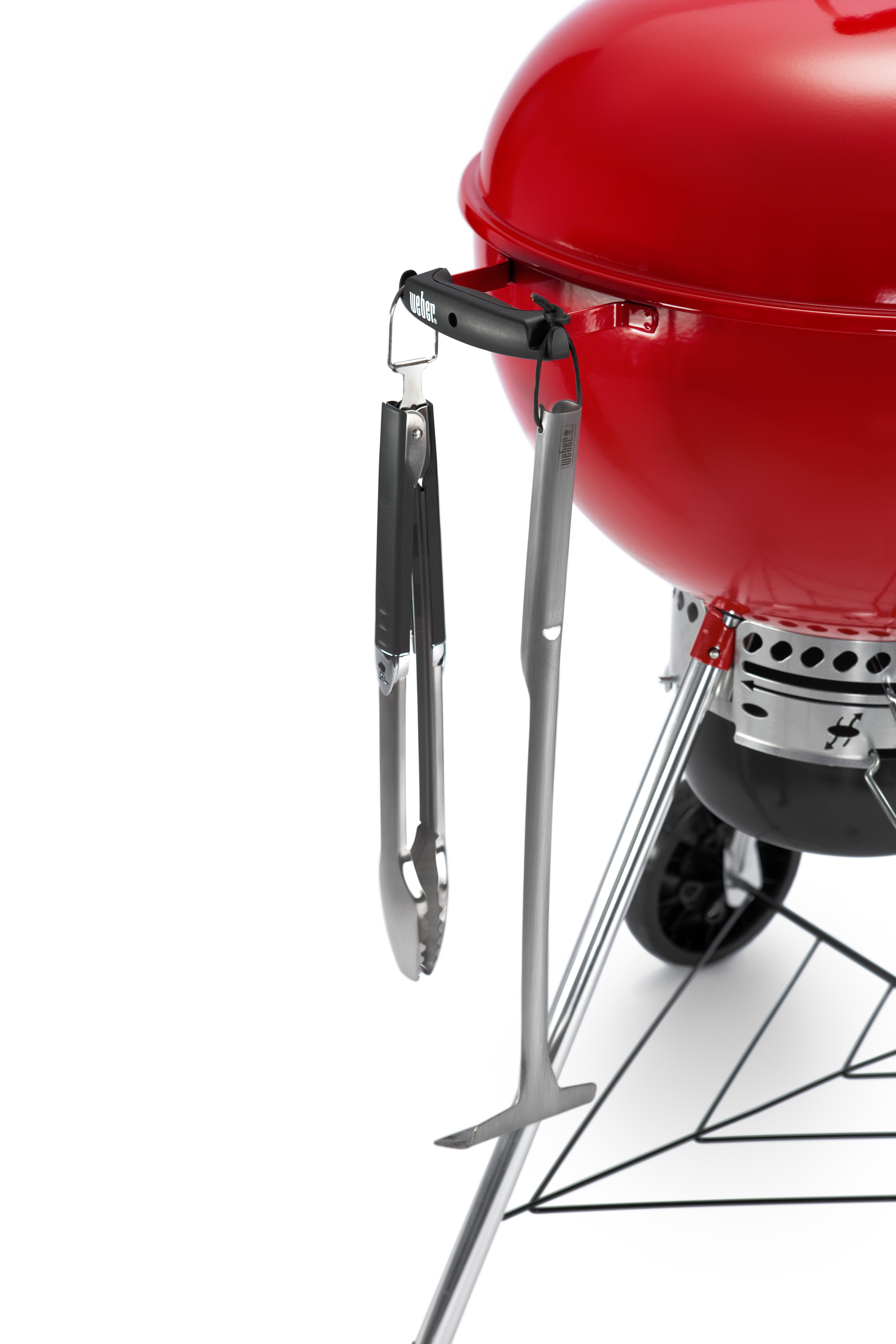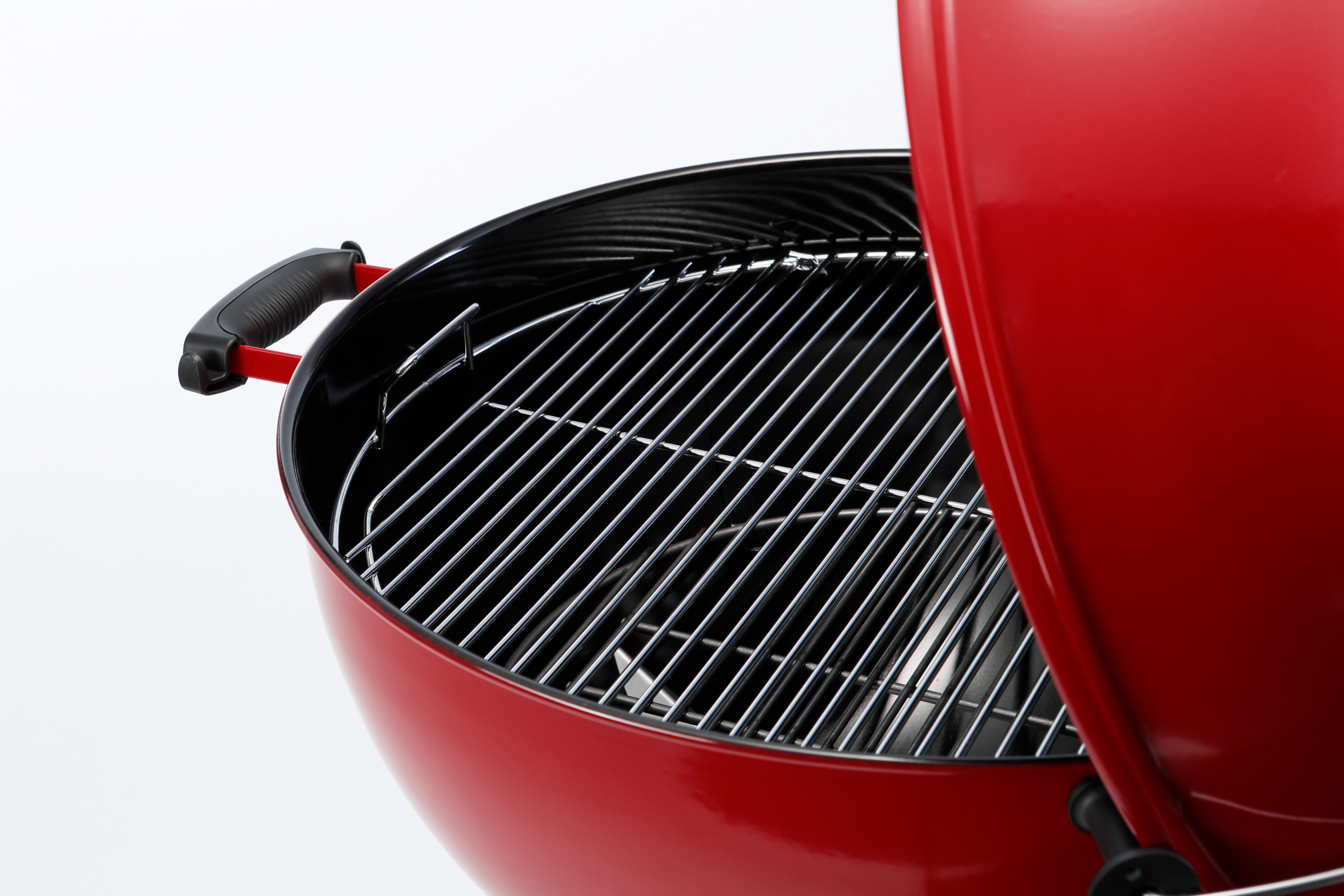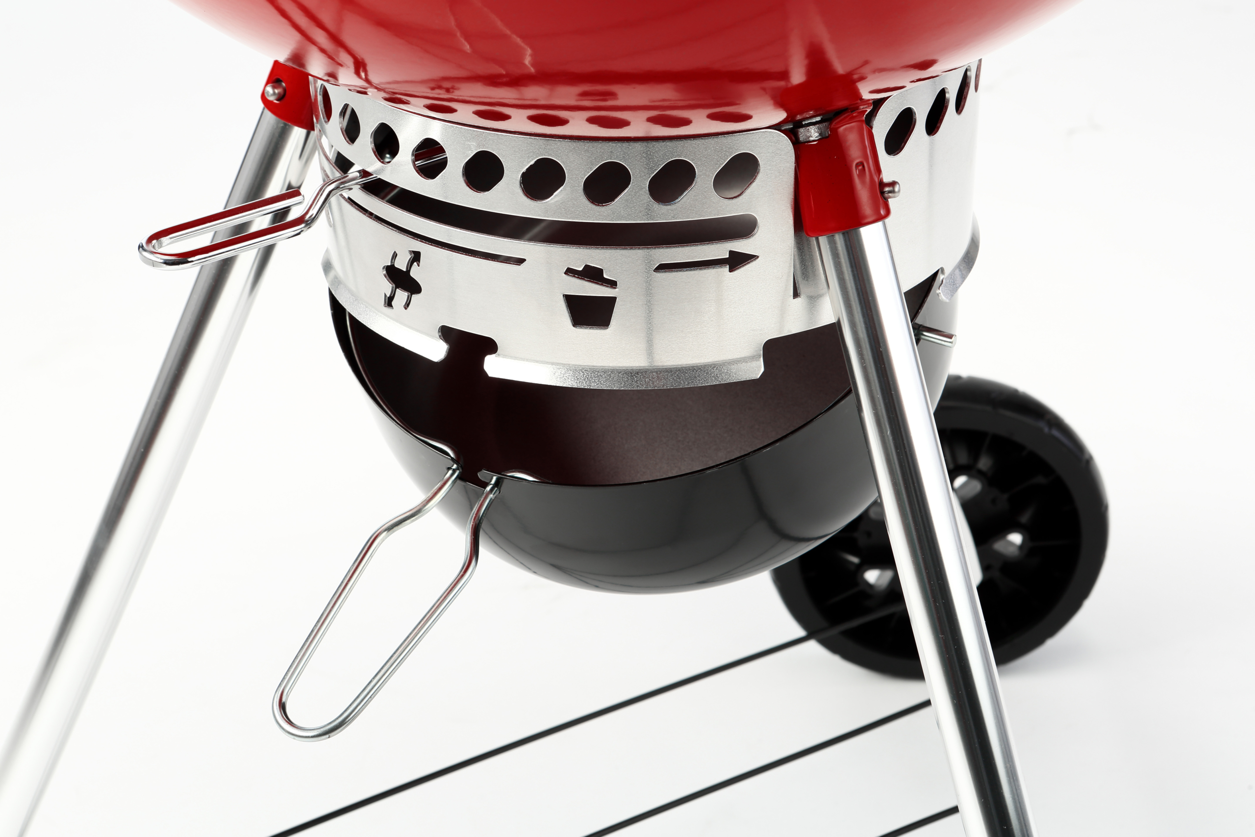 红韵Kettle(苹果炉)炉盖配有贴心隔热手柄,在合盖焖烤时,即使不佩戴防烫手套也可轻易提起炉盖。而Tuck-Away™ 炉盖支架则可快速放置炉盖以便操作食材翻面。炉身把手处更设有专属配件挂钩,便于在整个BBQ烹饪过程中随取随用。